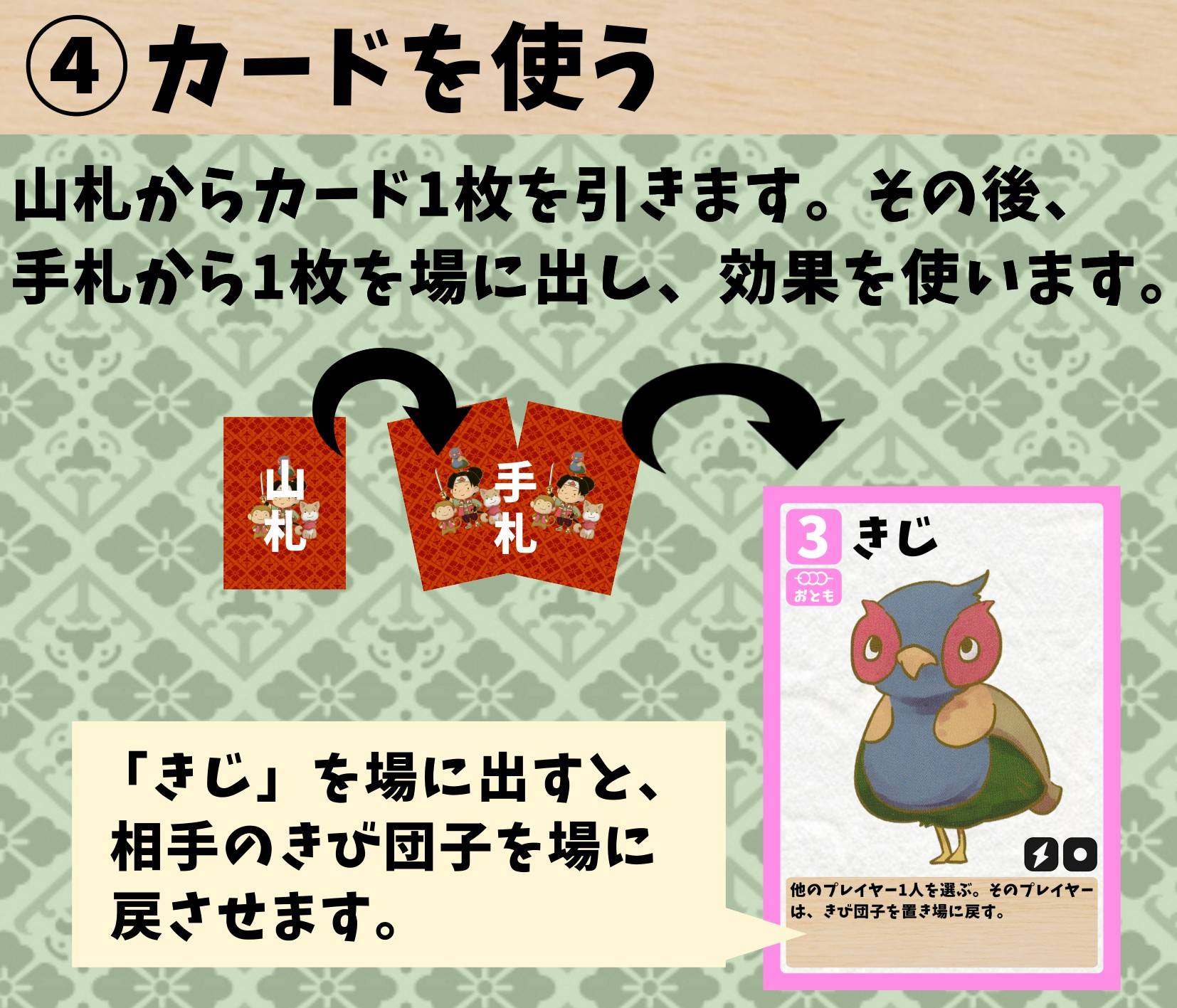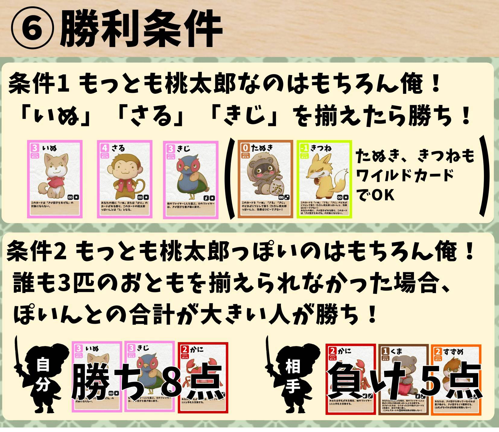 • 「いぬ」「さる」「きじ」3匹のおともを揃えたら勝ち!