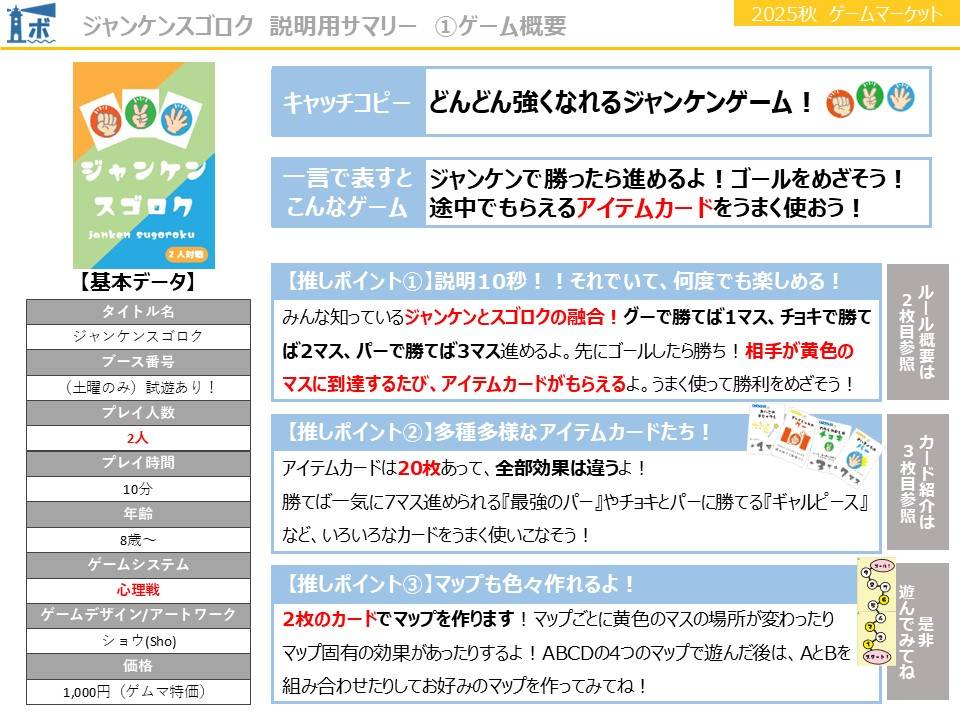 ゲームマーケット2025秋にて『ジャンケンスゴロク』を頒布いたします!