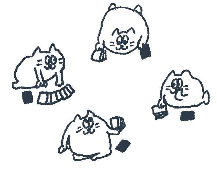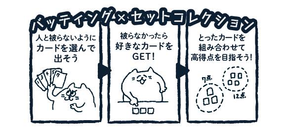 かわいいネコ?が不穏なカードを奪い合う!読み合いの頭脳戦バッティングゲーム