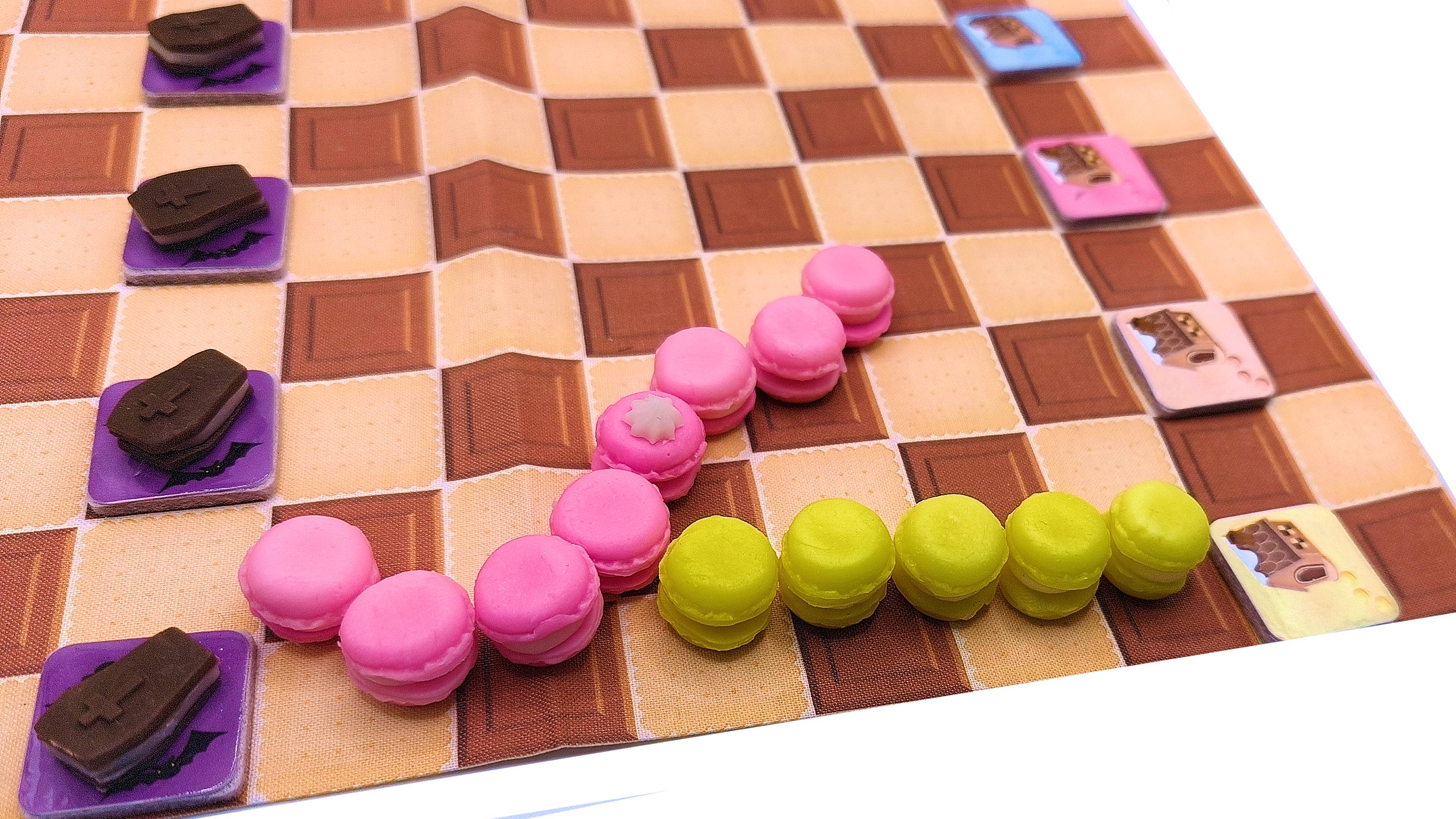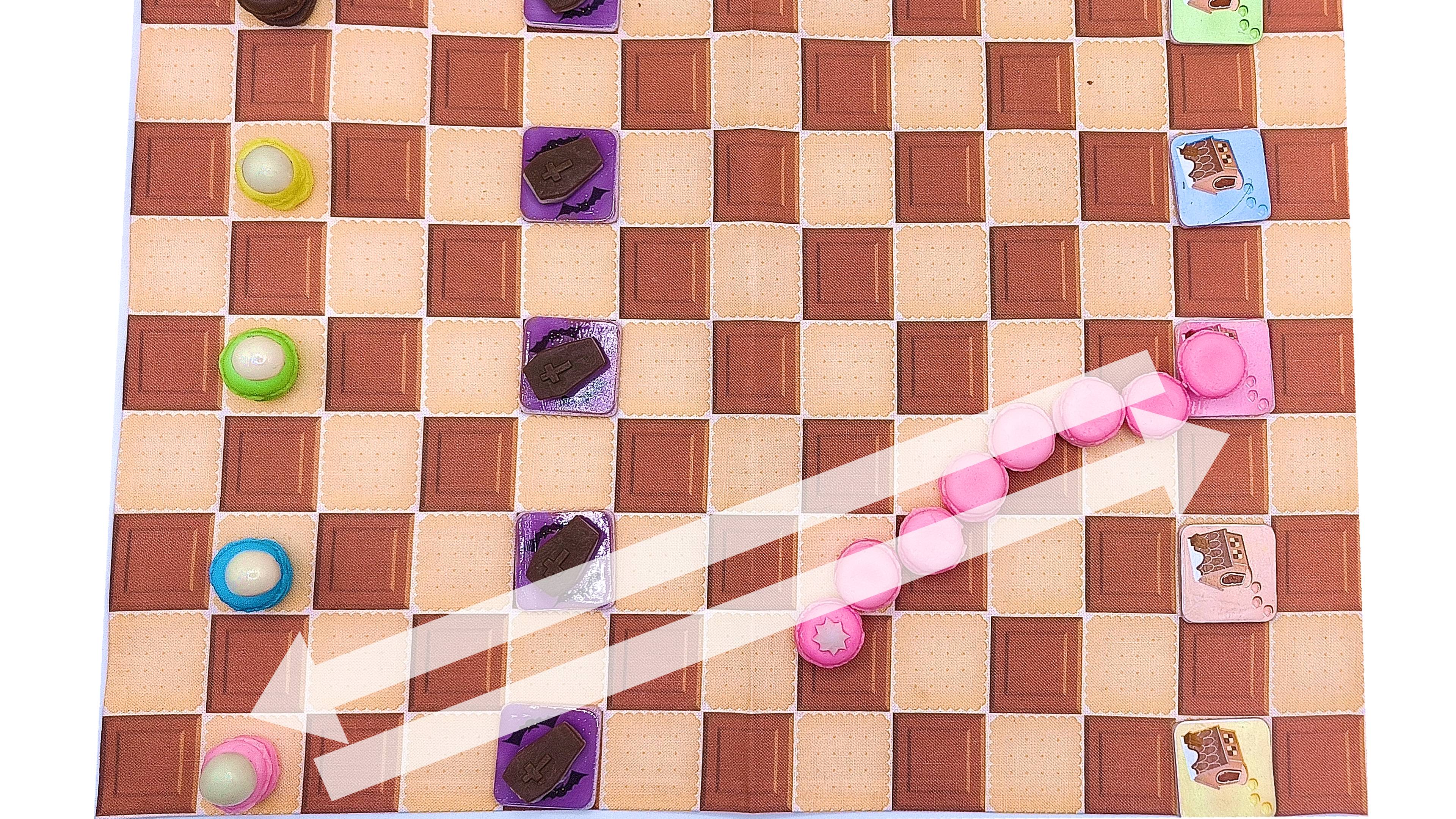移動は端のマカロンコマを先頭に移動させることで移動します。