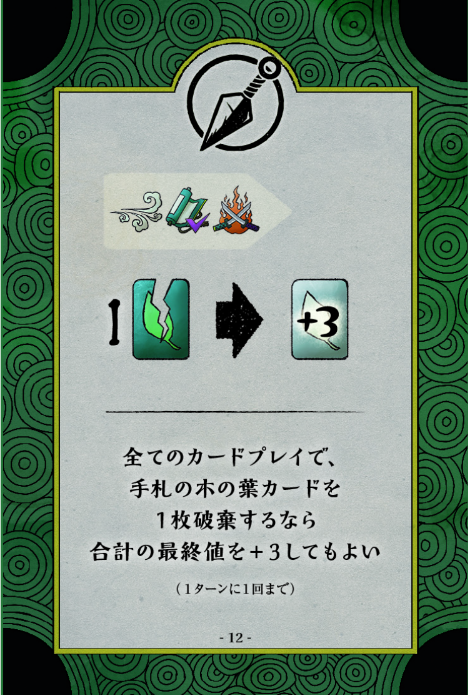 自分の捨て札置き場にある木の葉カードを全て手札に回収します。