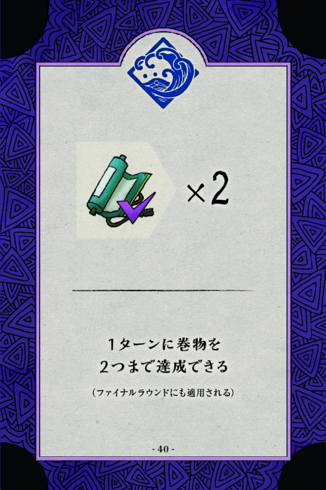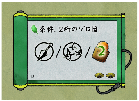 巻物はゲーム終了時に勝利点となります。また、達成ボーナスとして対応するアイコンの忍術カードを獲得できます。