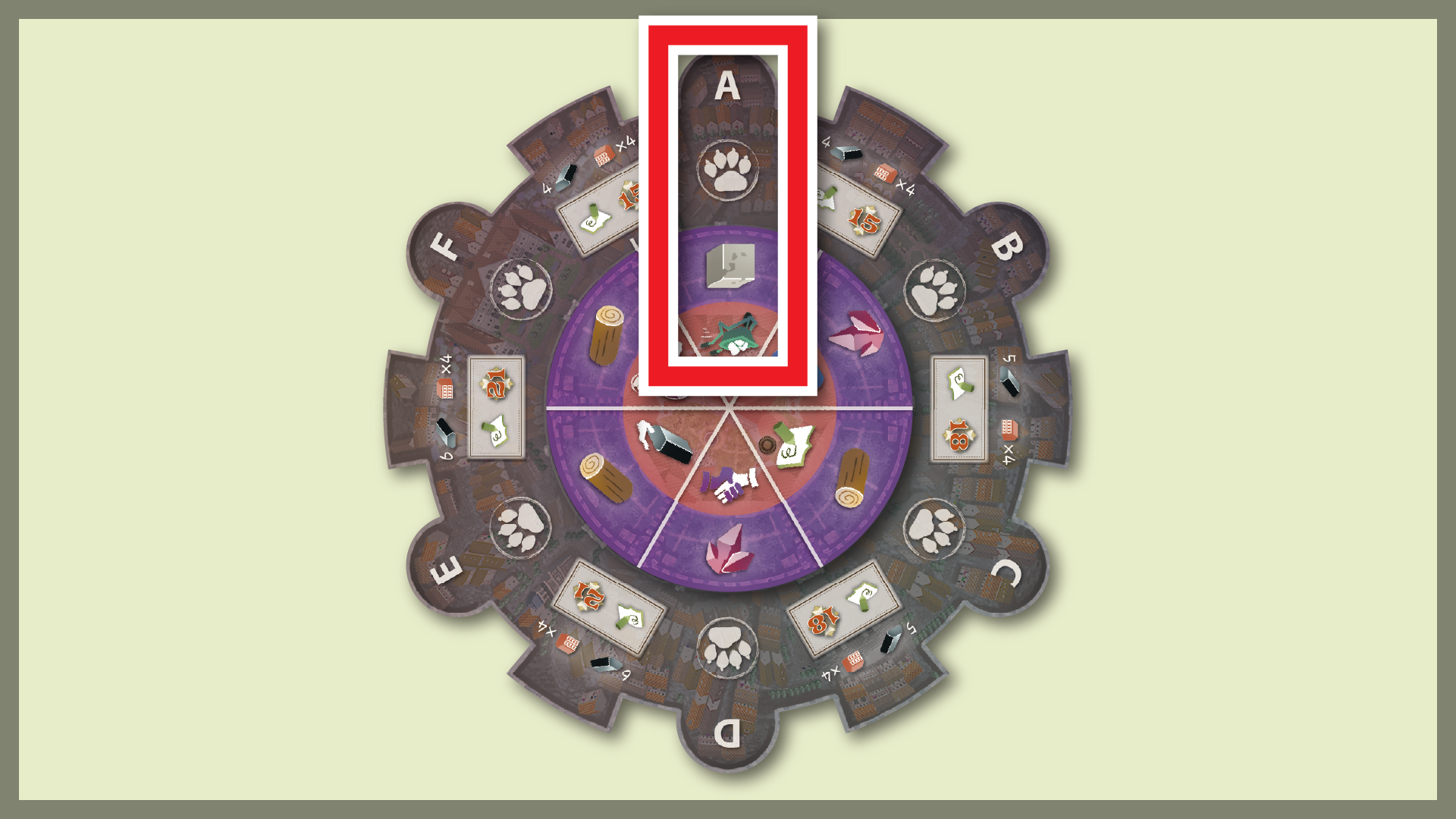 スタートプレイヤーがアクションホイールを回し終えたら、それをテーブル中央に戻します。