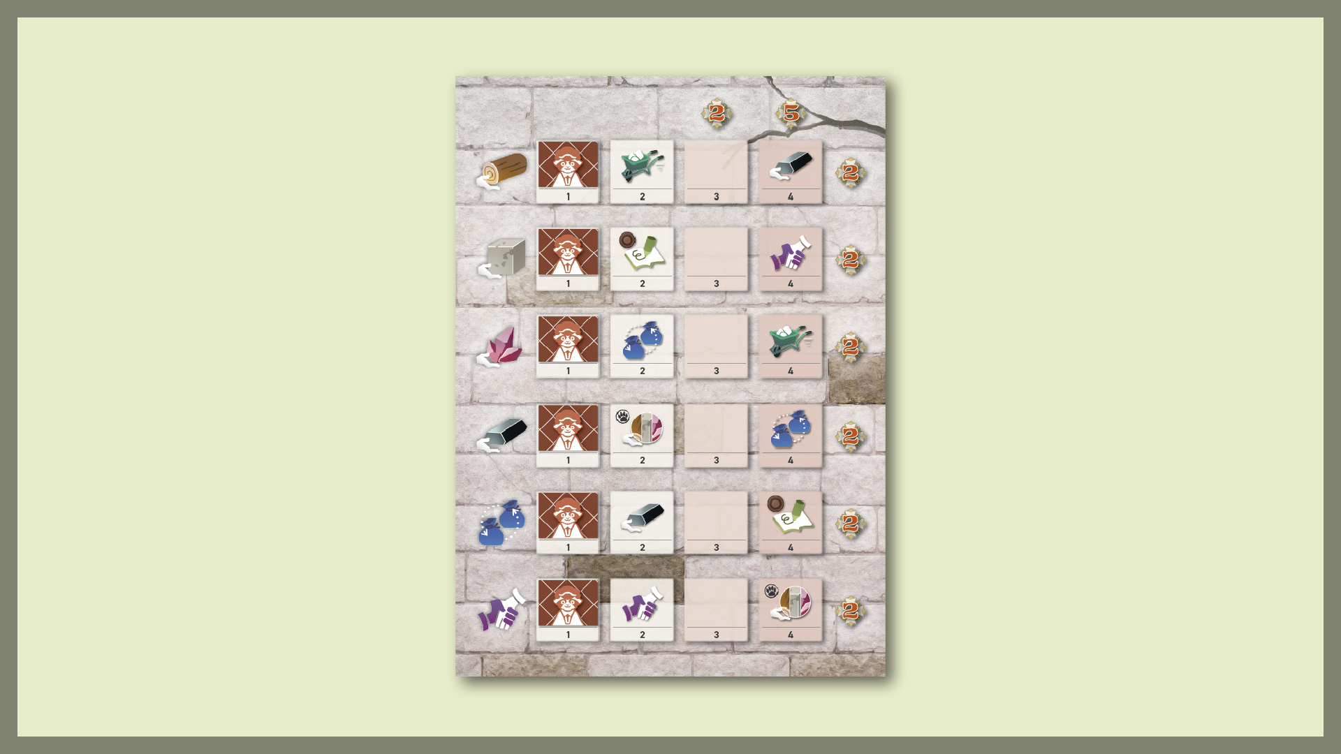 各プレイヤーには資材ボードがあり、その上で資材を移動させることができます。