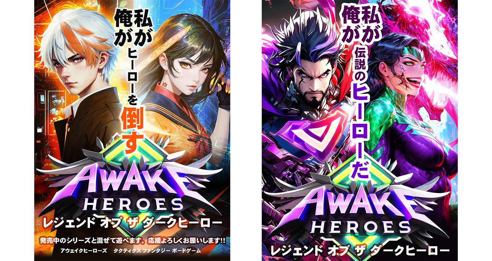 アウェイクヒーローズの第2弾「レジェンド オブ ザ ダークヒーロー」です。前作と合わせて遊ぶこともできます。本作では新たな3陣営として「ダークヒーローの支配者」、「ヒーロー打倒を目指す学生の戦士達」、「平和を望む神獣達」が活躍します。物語の結末はあなたの戦略にかかっています。それでは英雄たちの活躍する戦乱の世界で、ドキドキハラハラする熱いバトルを楽しんでください!!