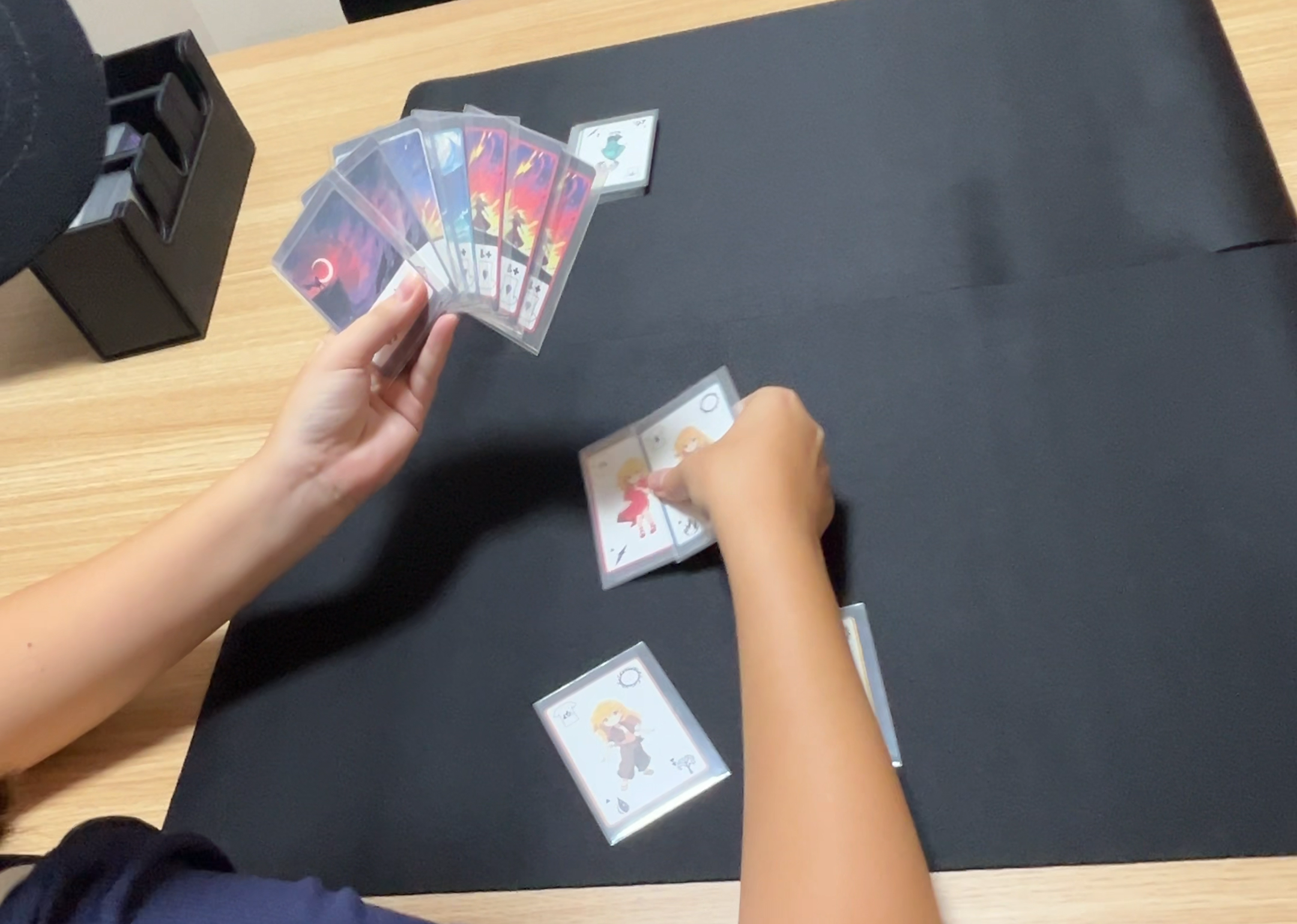 - 手札(=デッキ)から1枚ずつカードを出し、同時にオモテにする形式で勝負!