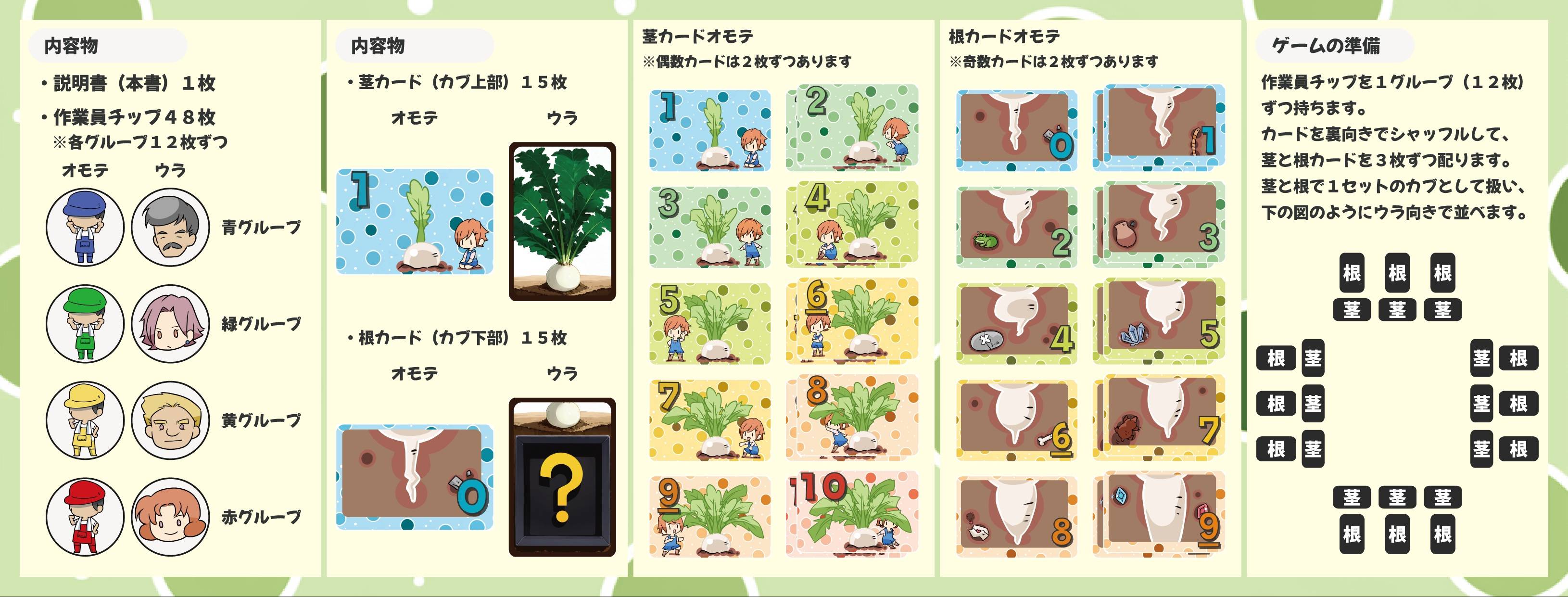 - カブは「大きさが公開の茎」と「大きさが限定公開の根」の2つのカードに分かれています。