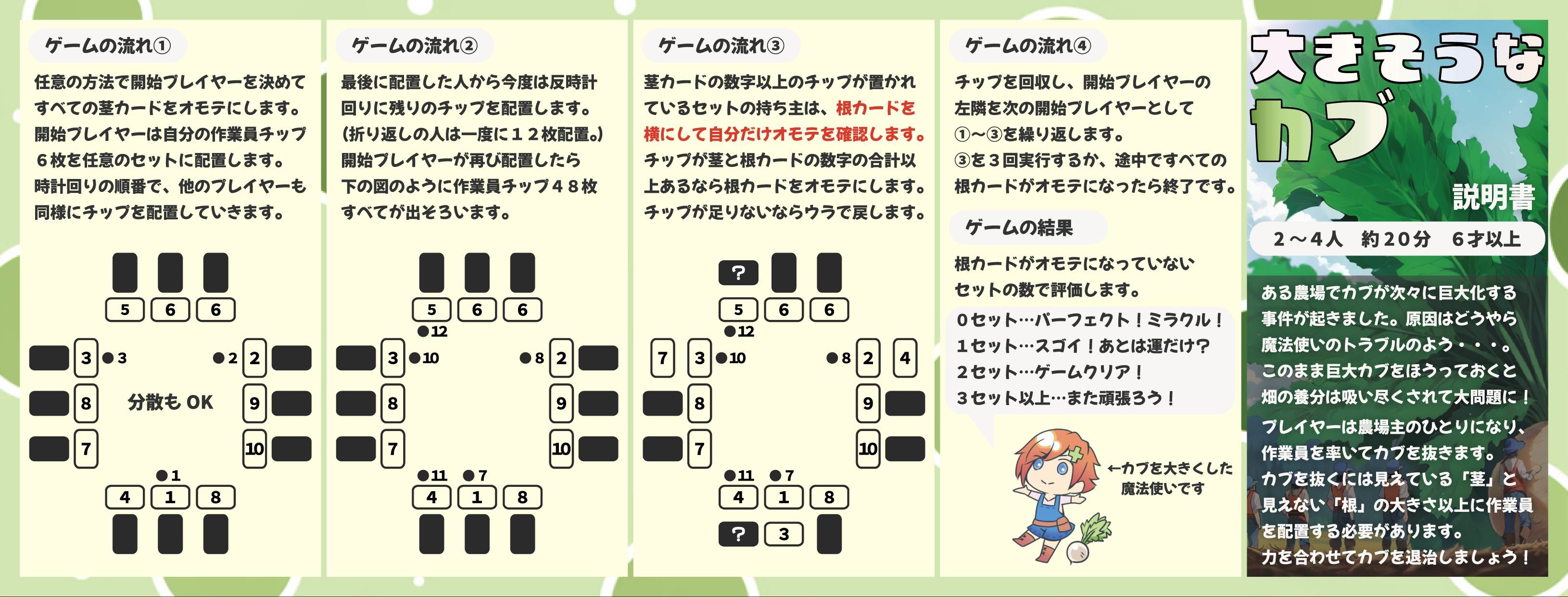 - 根の大きさを確認するチャンスがあるのはカブの持ち主だけです!なるべく作業員チップの配置だけでカブを抜く計画を伝えましょう!