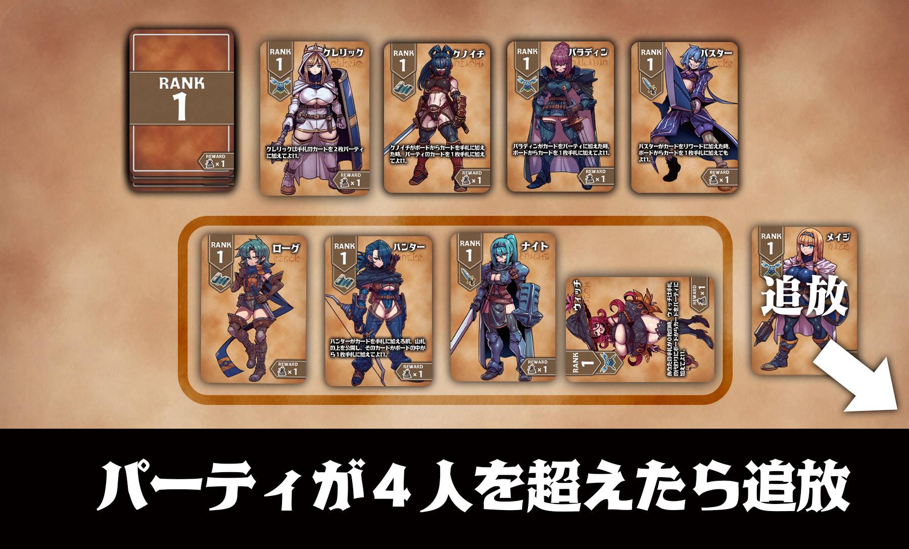 カードを使用して手札やパーティが5枚以上になった時、4枚になるようにカードを追放します。