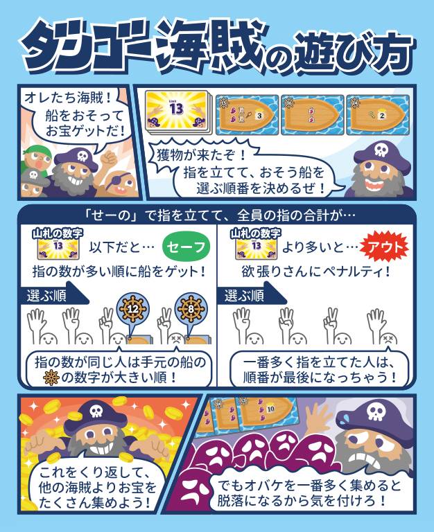 立てた指の数で船を選ぶ順番を決めるけど、欲張り過ぎると