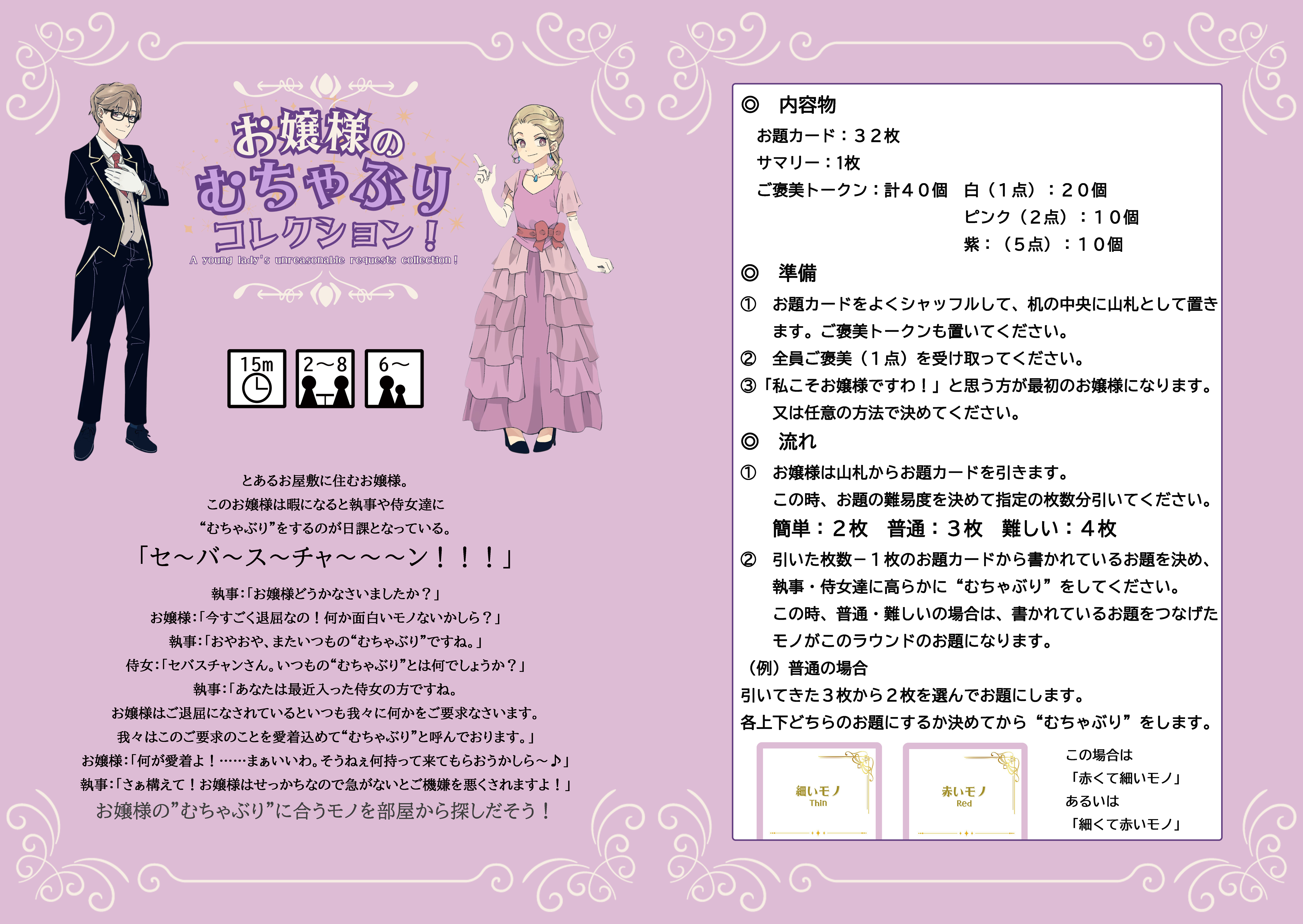 お嬢様はお題カードを引いて、出たお題を組み合わせて”むちゃぶり”を宣言します。
