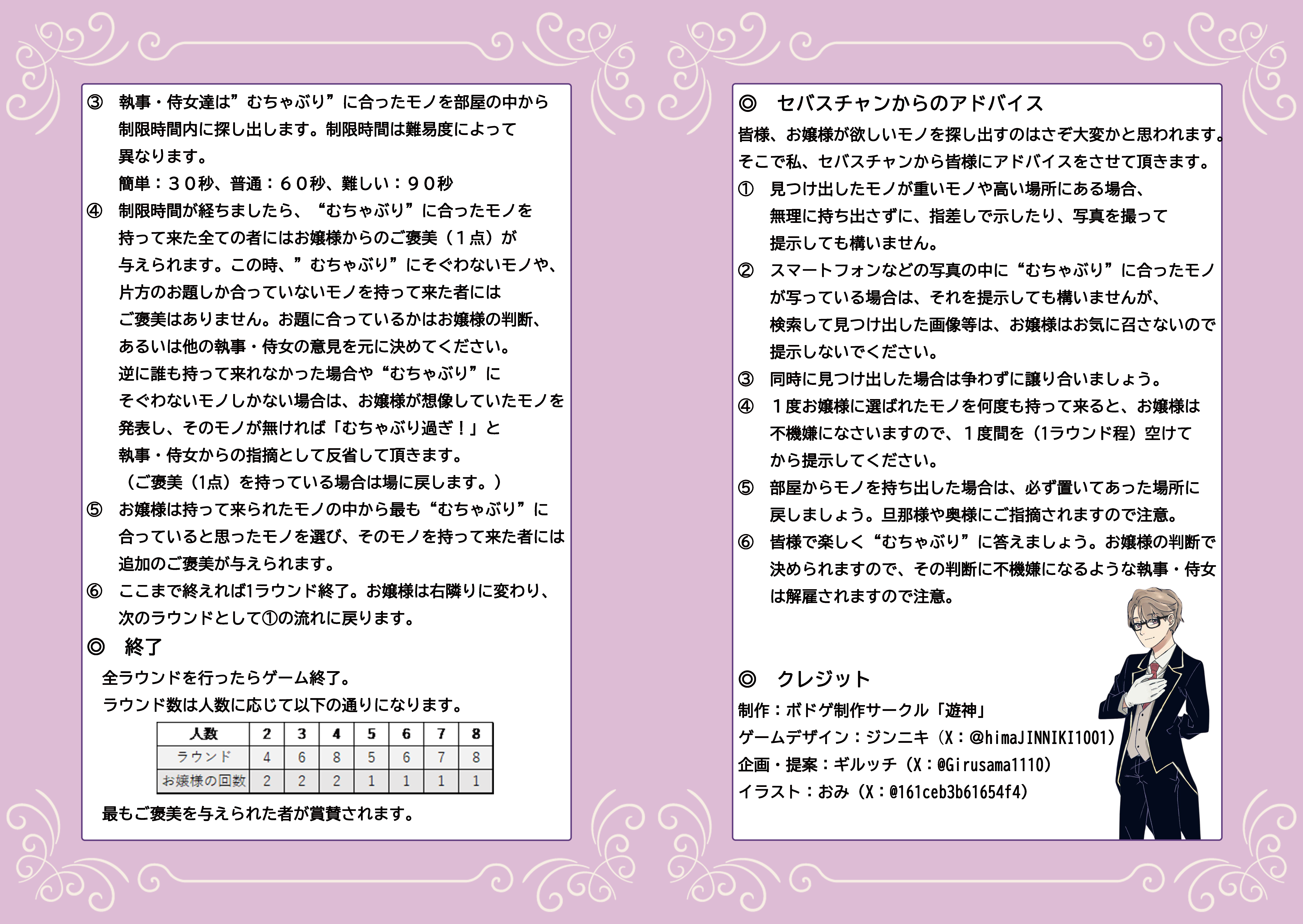 執事:「あなたは最近入った侍女の方ですね。 お嬢様はご退屈になされているといつも我々に何かをご要求なさいます。 我々はこのご要求のことを愛着込めて“むちゃぶり”と呼んでおります。」