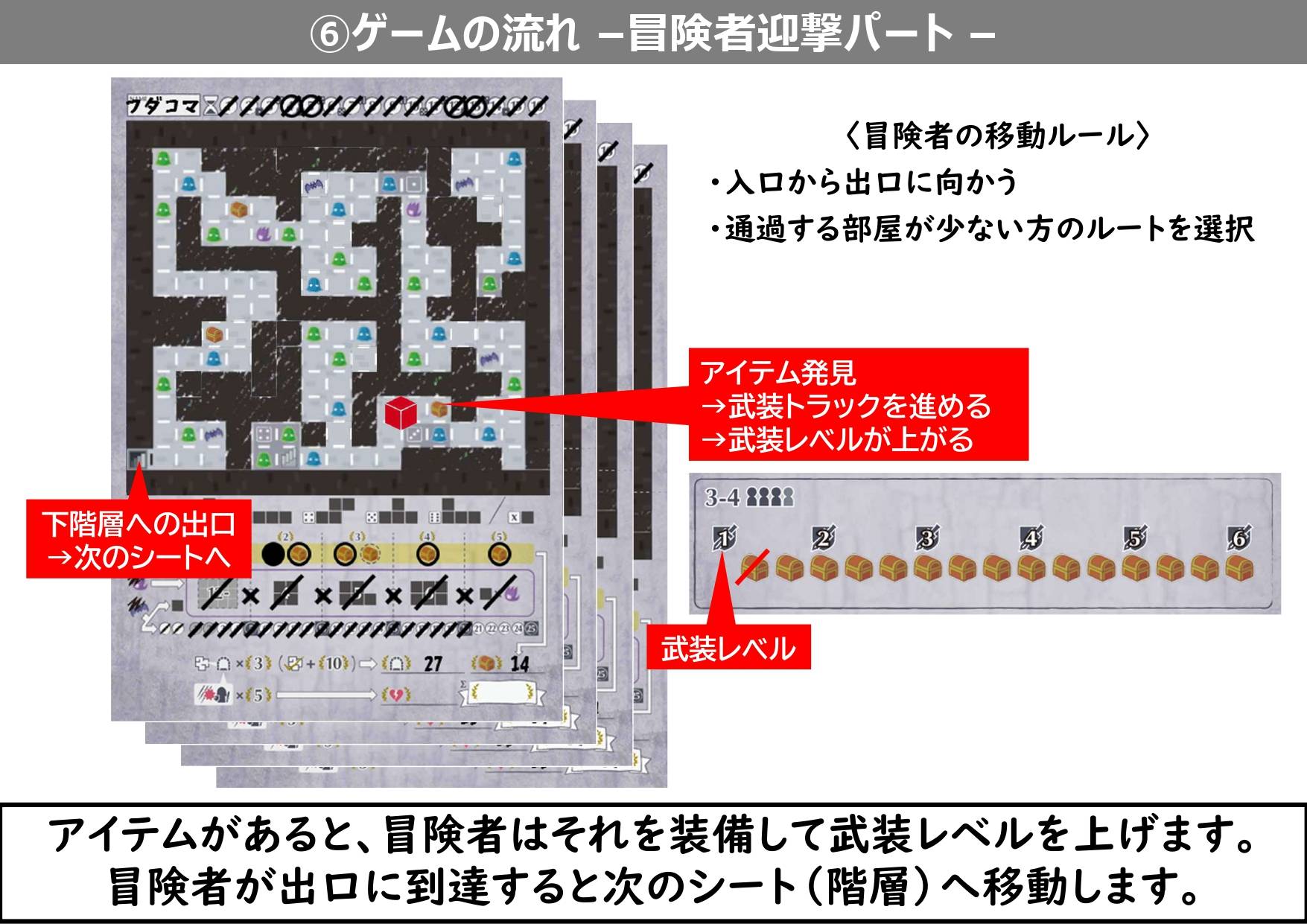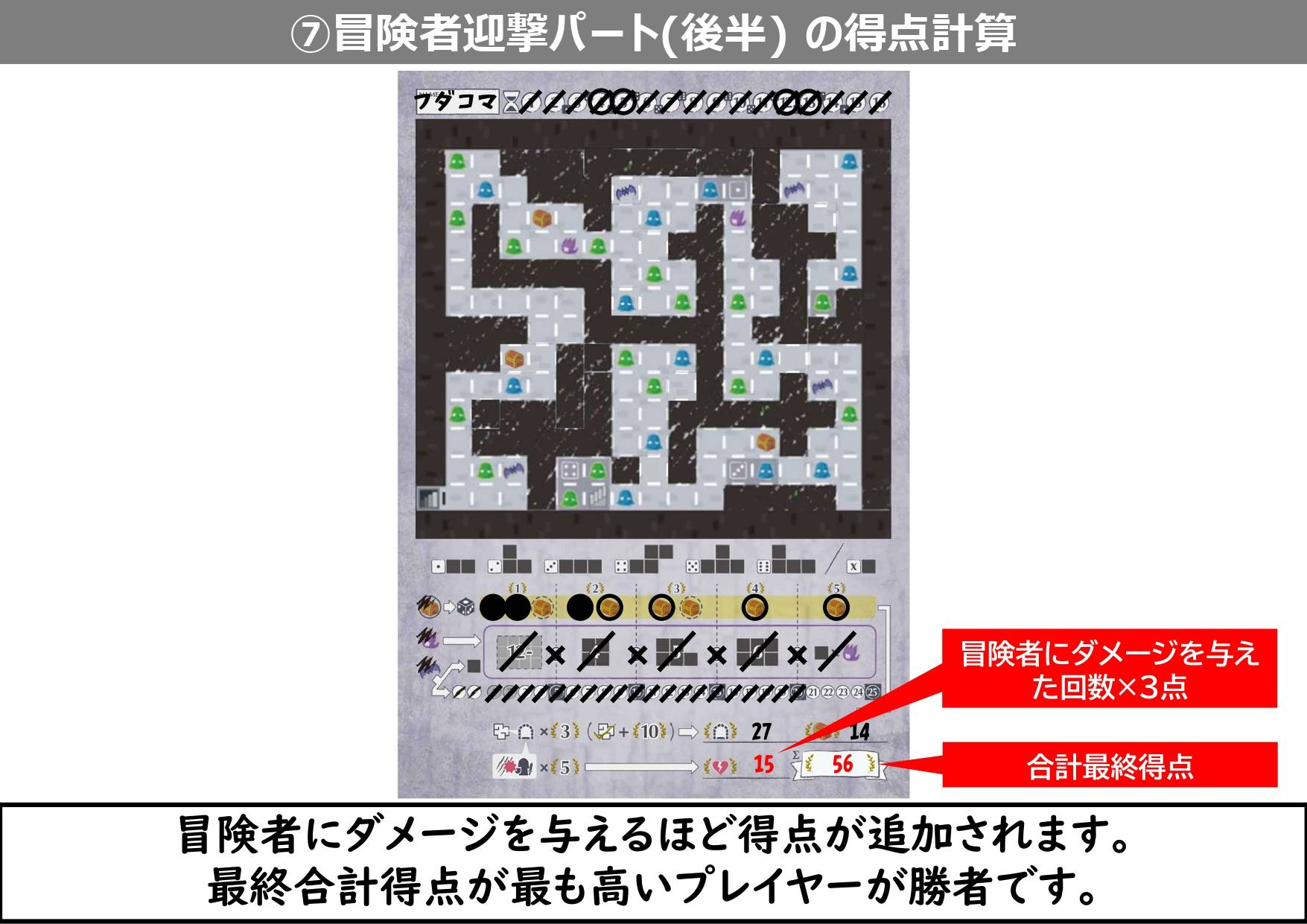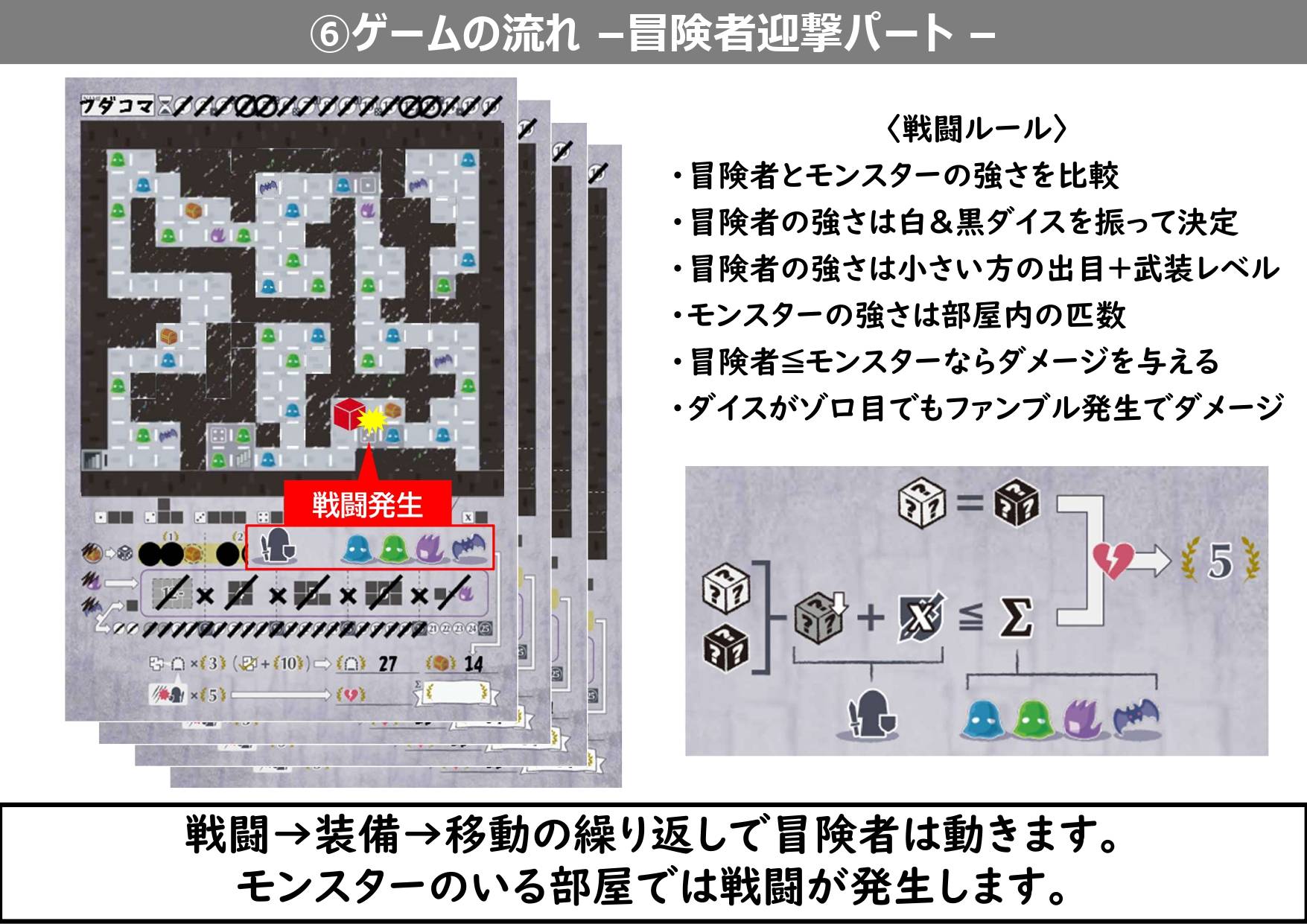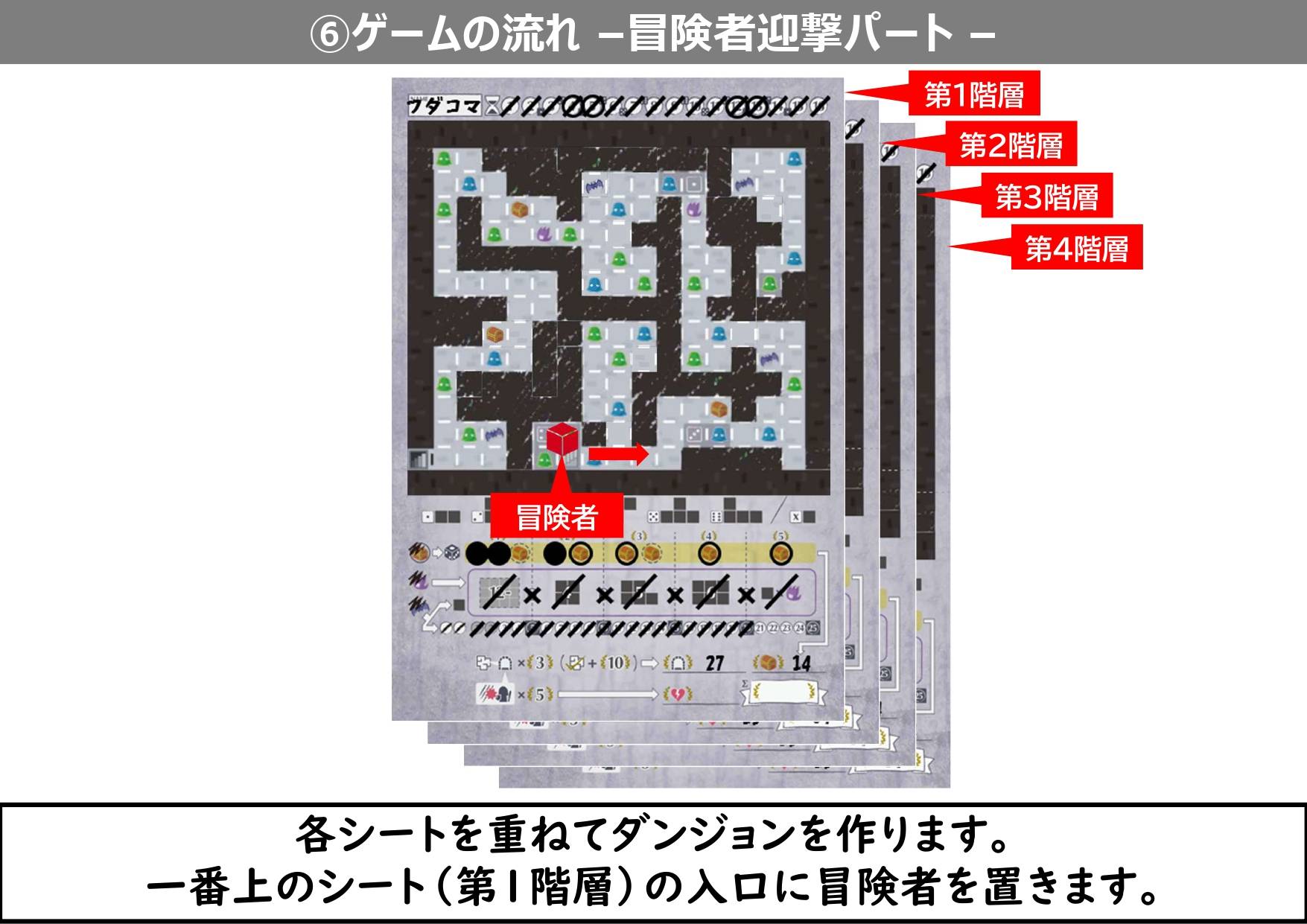 - 皆のフロアを重ねてダンジョン完成!冒険者を叩いて追加点!