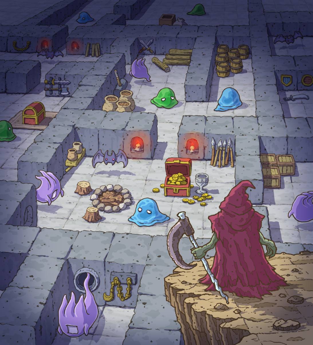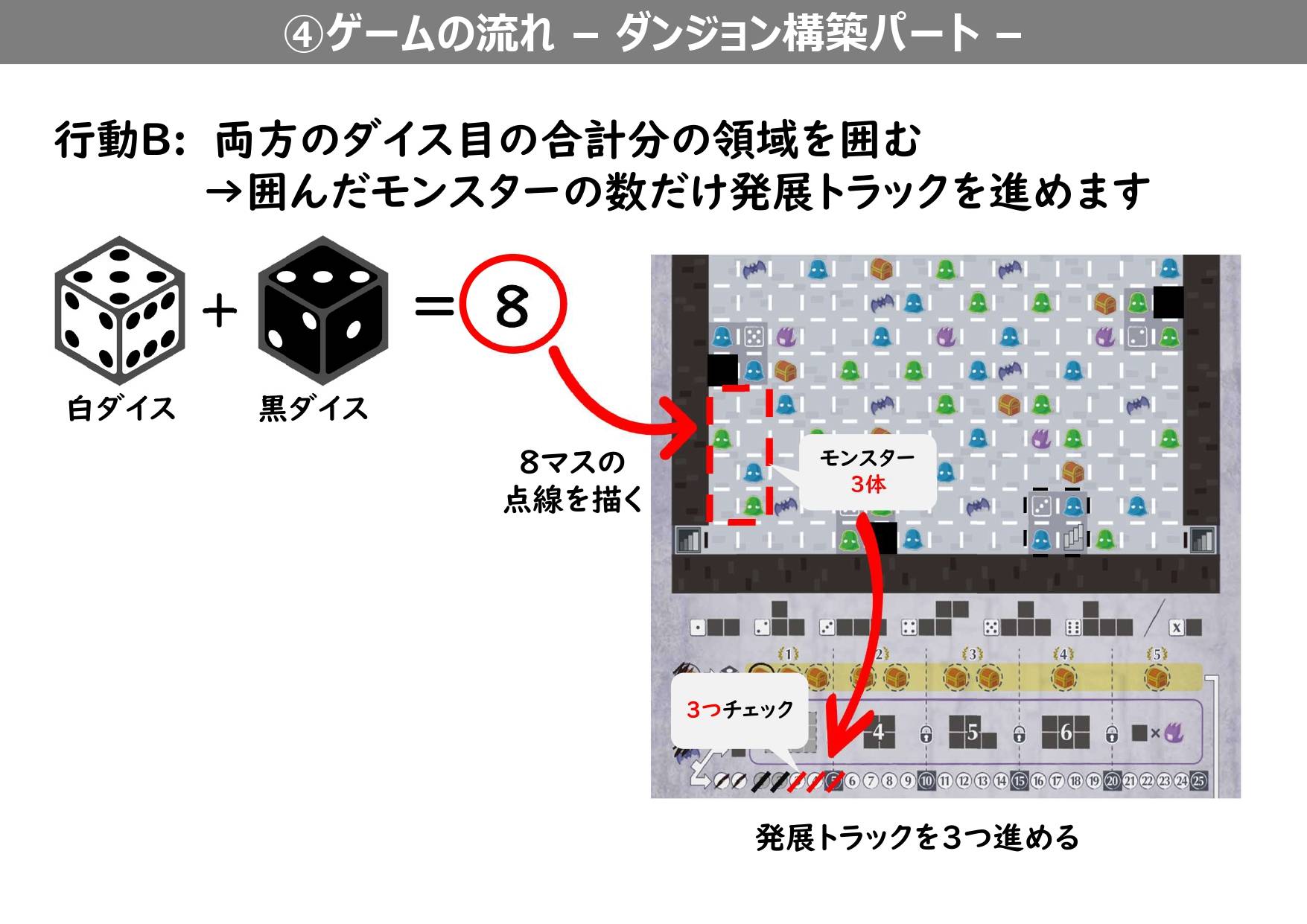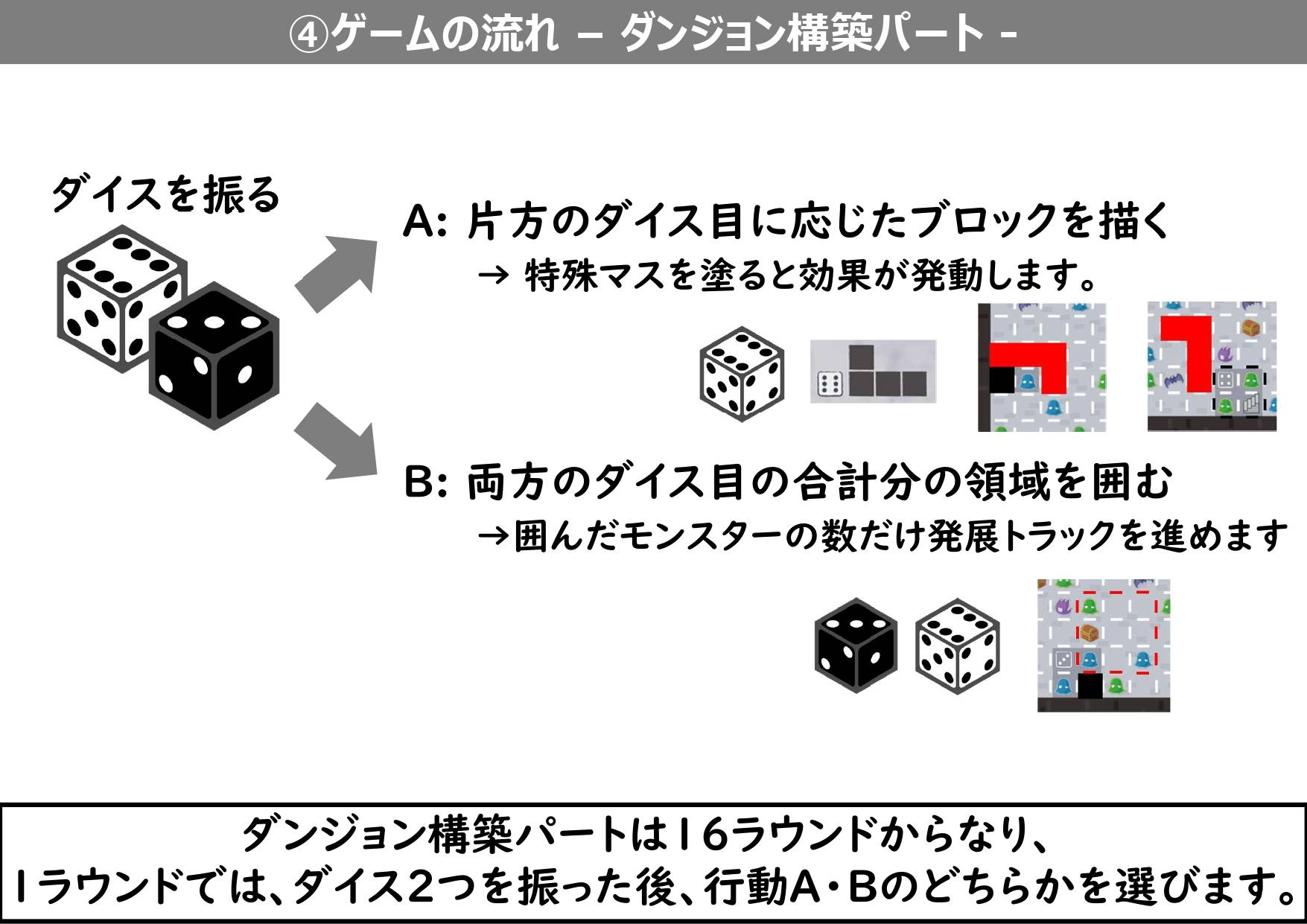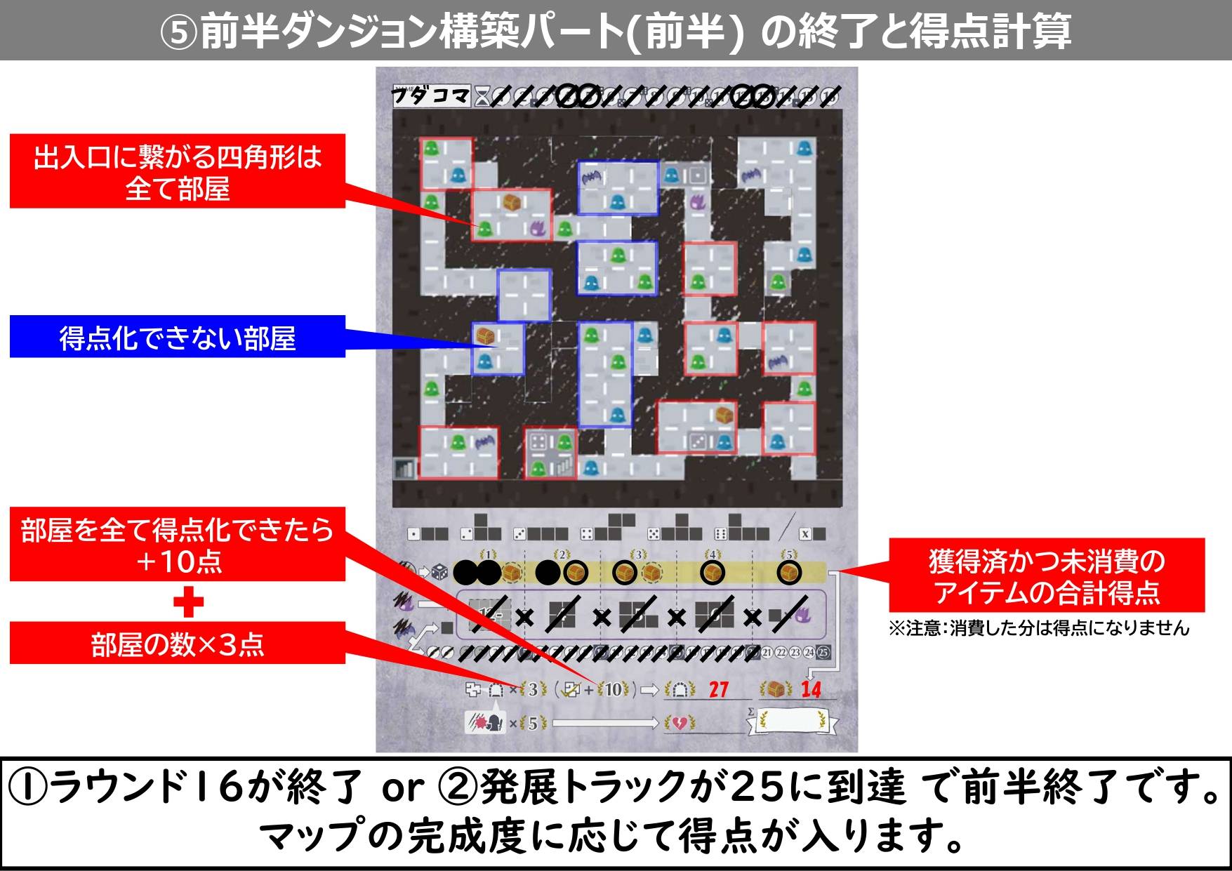 - 皆のフロアを重ねてダンジョン完成!冒険者を叩いて追加点!