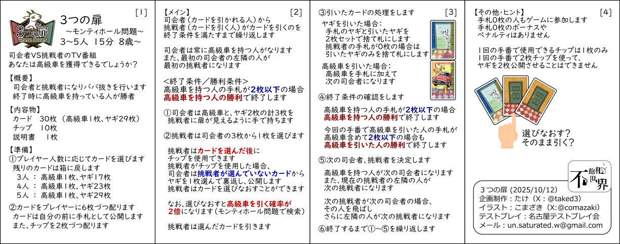 カードを引く側は引くカードを選んだ後にチップを使うとハズレのヤギを1枚確認して引くカードを選びなおすことができます