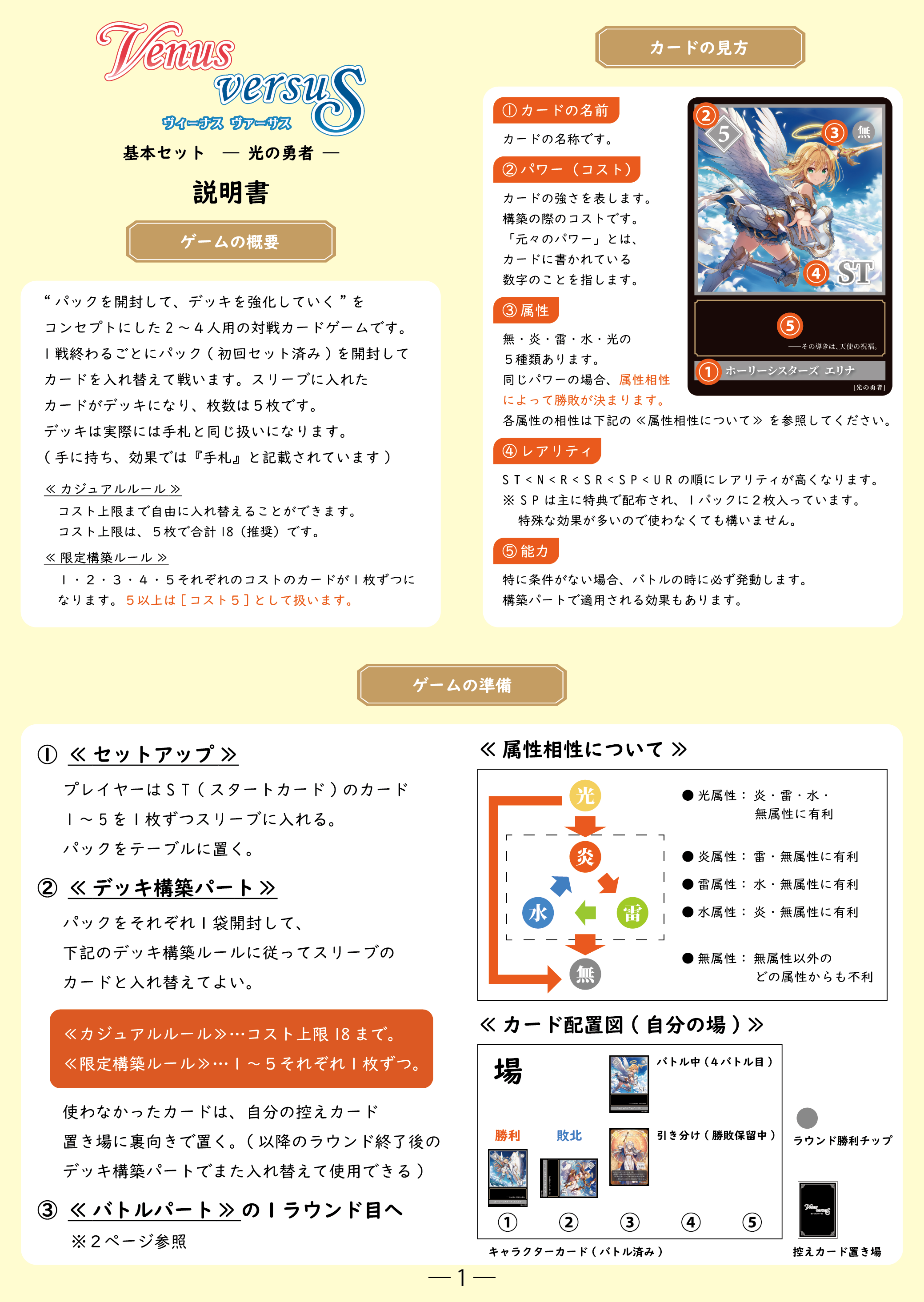 これ単体でも、VENUS VERSUS -ヴィーナスヴァーサス- 【基本セット 光の勇者】と混ぜても遊べます。