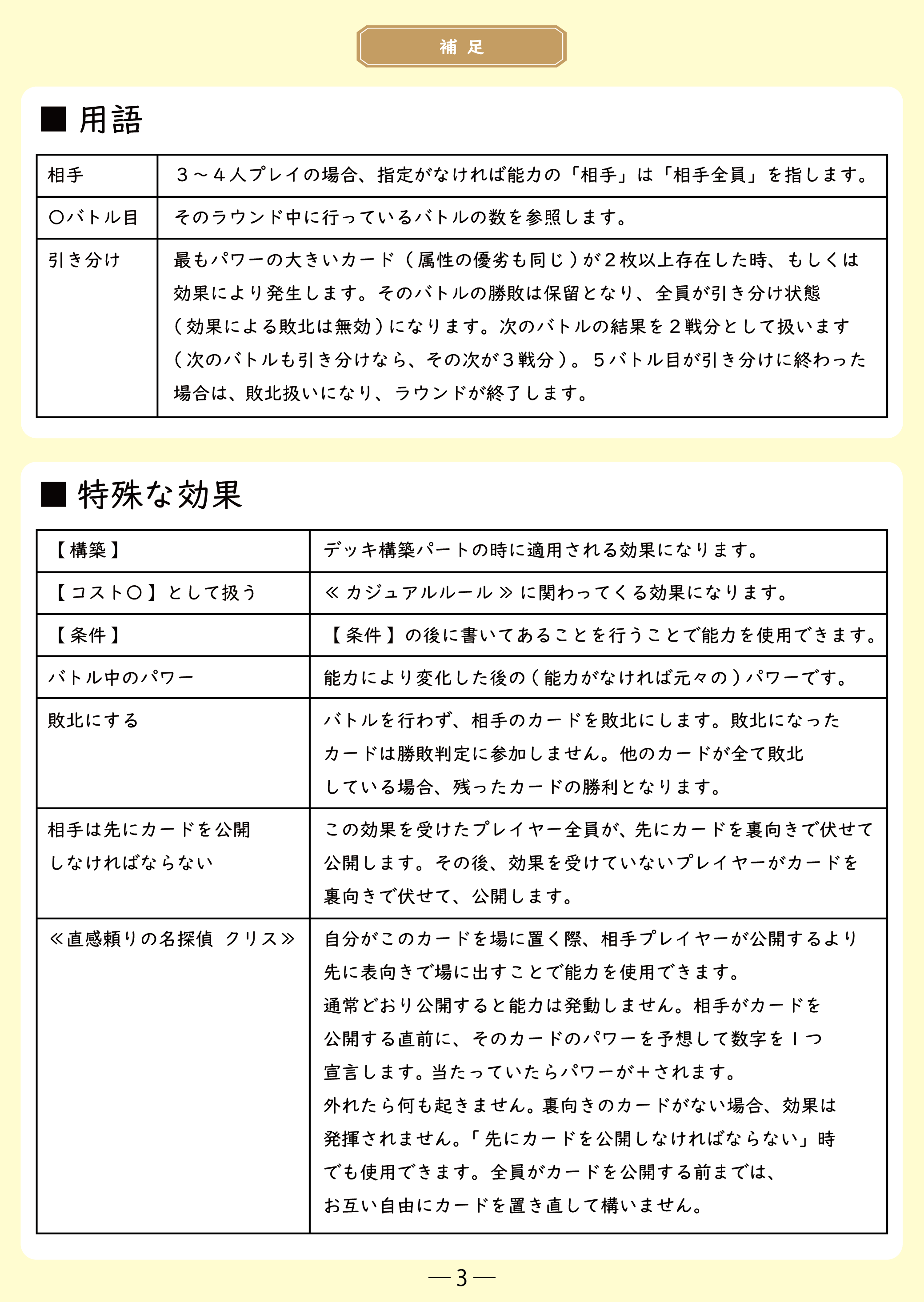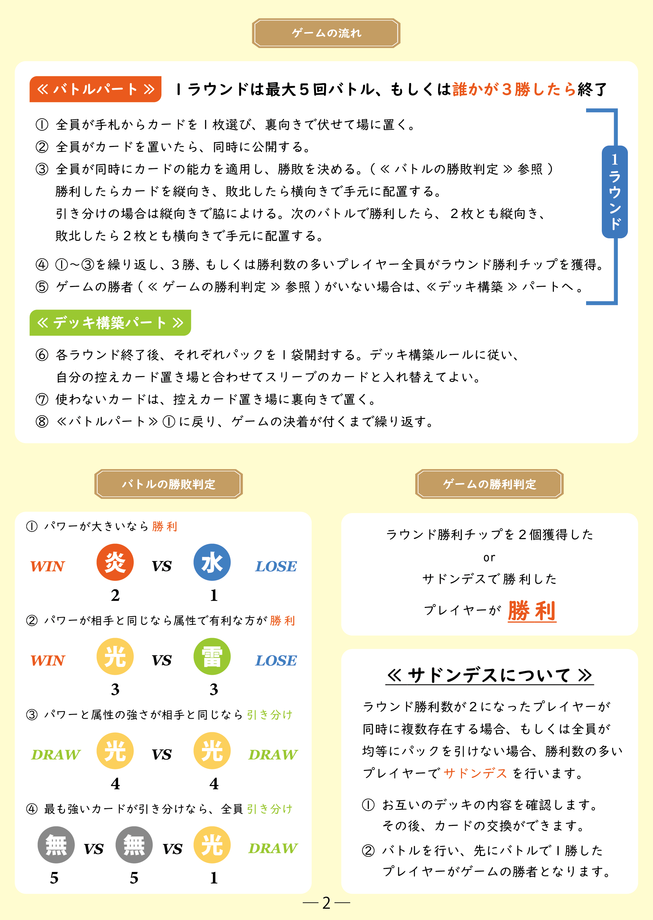 - どんなカードが出てくるか分からない、パーティー感を楽しむ≪カジュアルルール≫に、読み合い・戦略を楽しむ本格的なルールも。