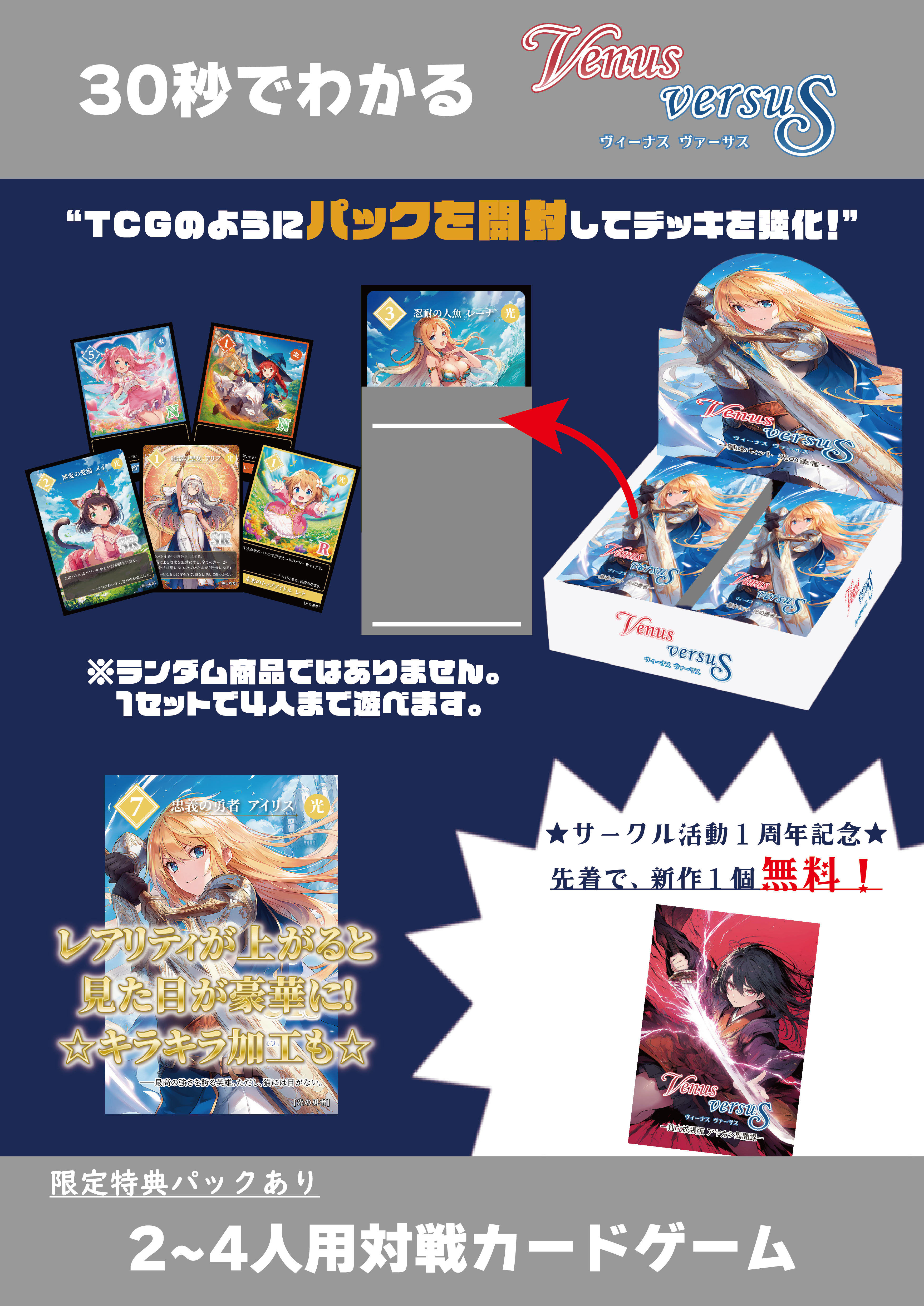 会場で商品どれかを買っていただいた方に、もう1つの新作『VENUS VERSUS -ヴィーナスヴァーサス-【独立拡張版(単体で遊べる) アヤカシ異聞録】』をお付けします。