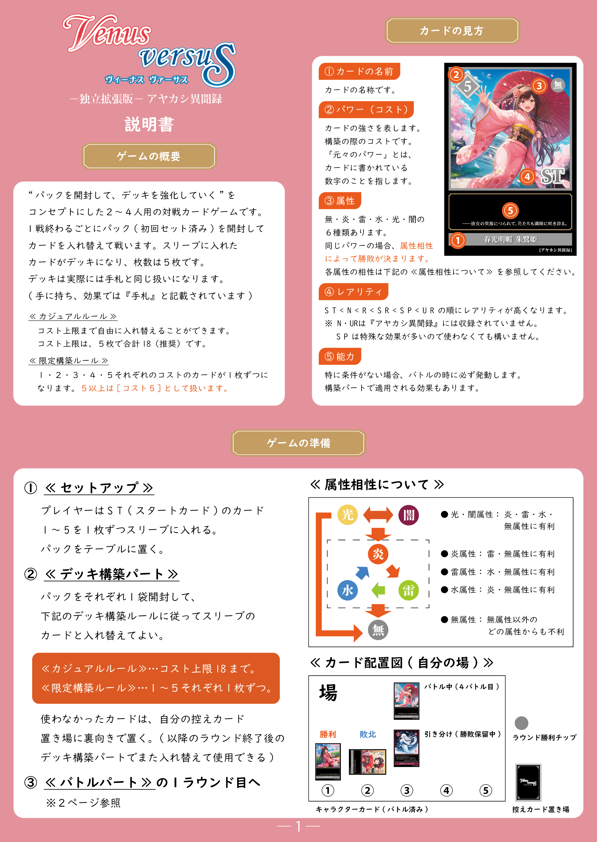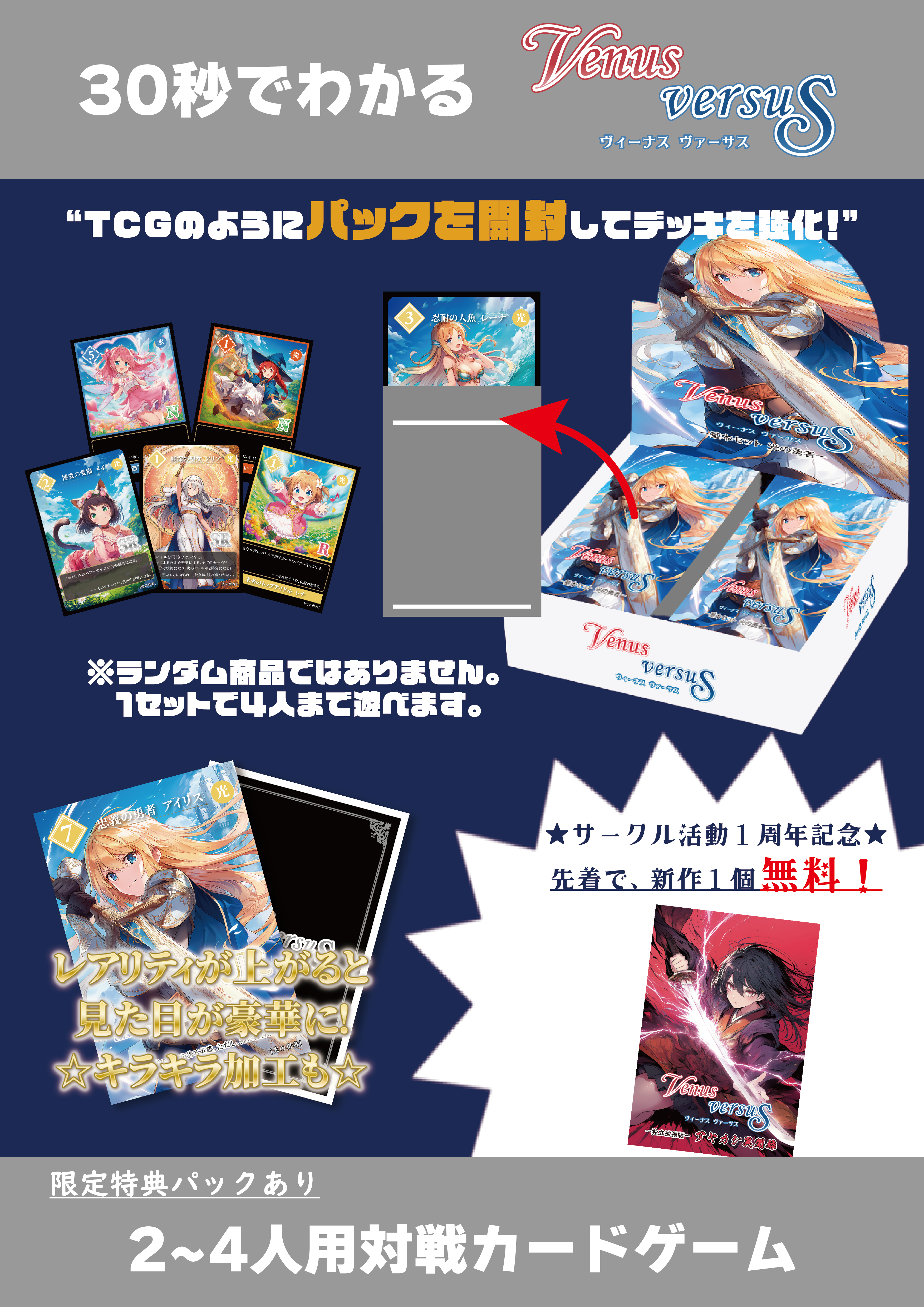 会場で商品どれかを買っていただいた方に、もう1つの新作『VENUS VERSUS -ヴィーナスヴァーサス-【独立拡張版(単体で遊べる) アヤカシ異聞録】』をお付けします。