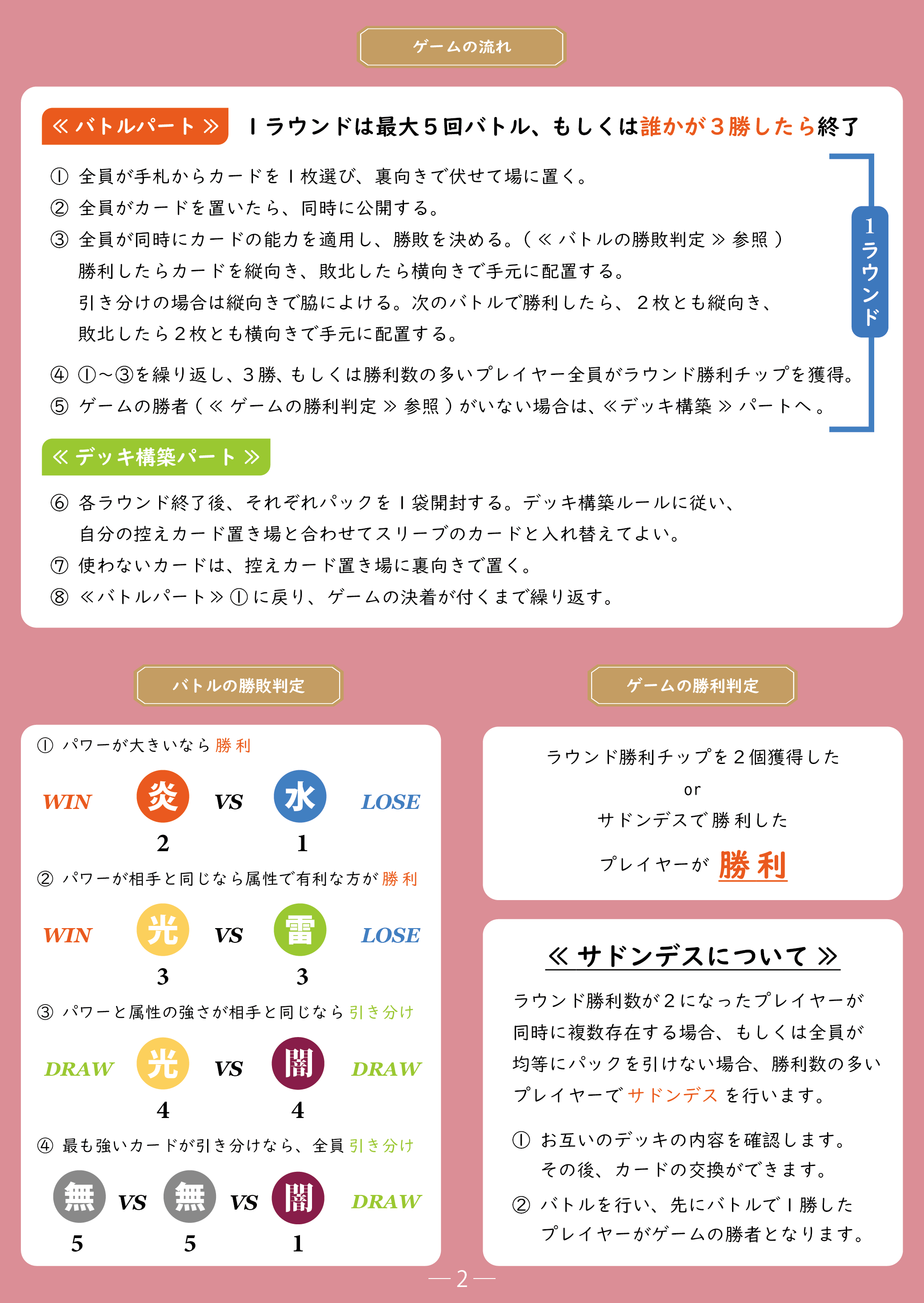 | プレイ人数 | 2〜4人 | プレイ時間 | 15〜30分 |