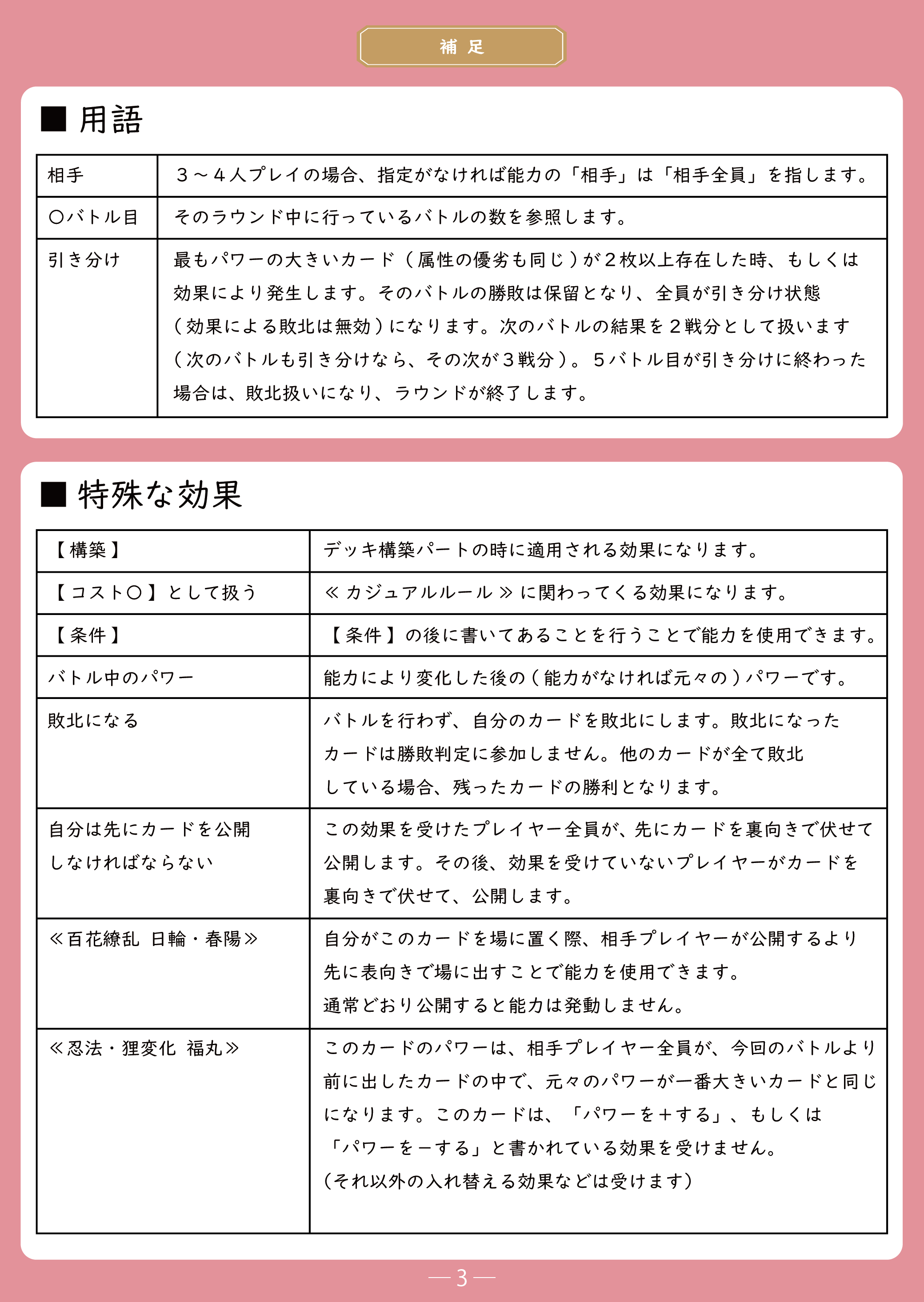 - 何が出てくるか分からないパーティー感を楽しむカジュアルルールに、読み合い・戦略を楽しむ本格的なルールも。