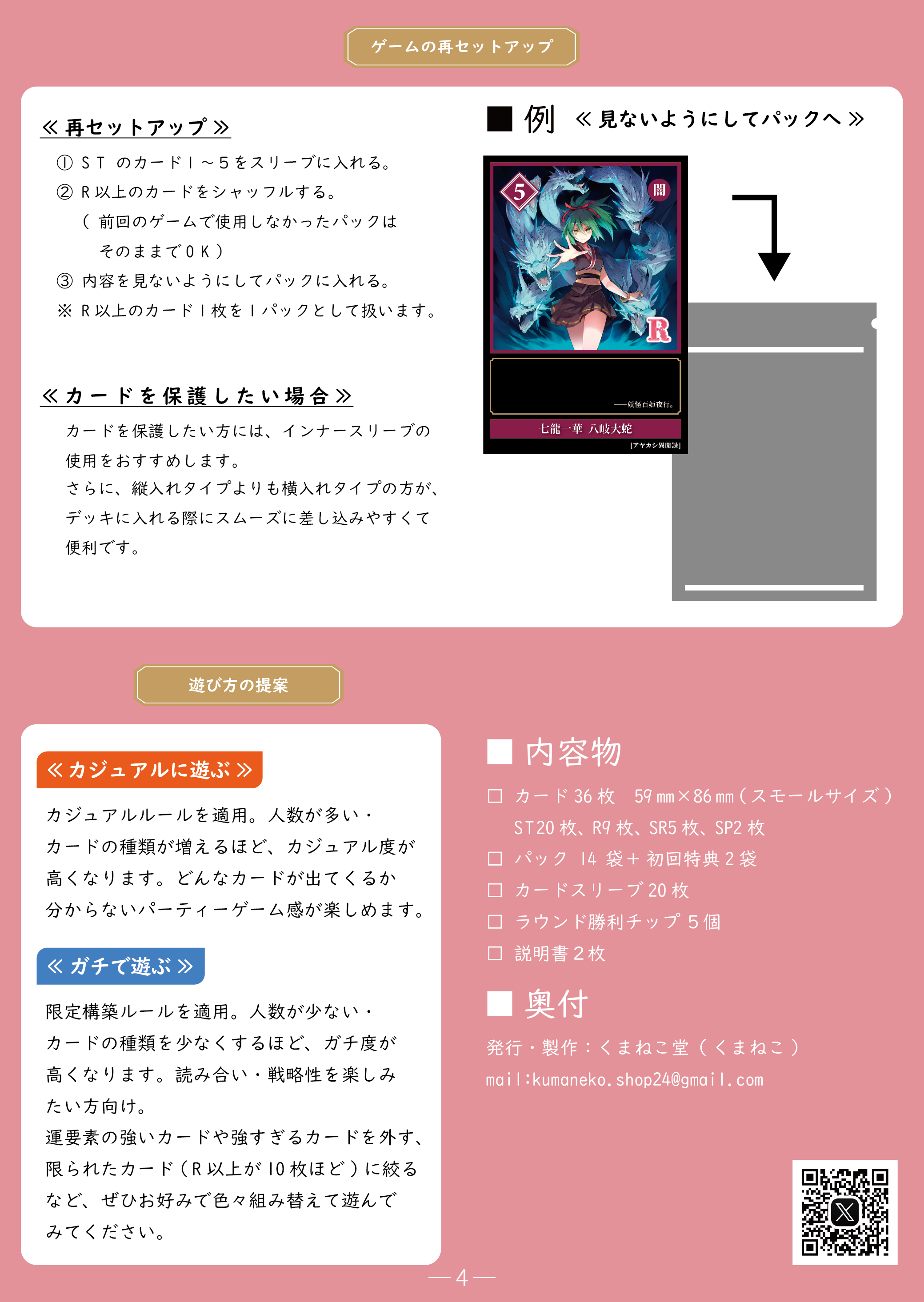 ”パックを開封して、デッキを強化していく”をコンセプトにした2-4人用対戦カードゲームです。