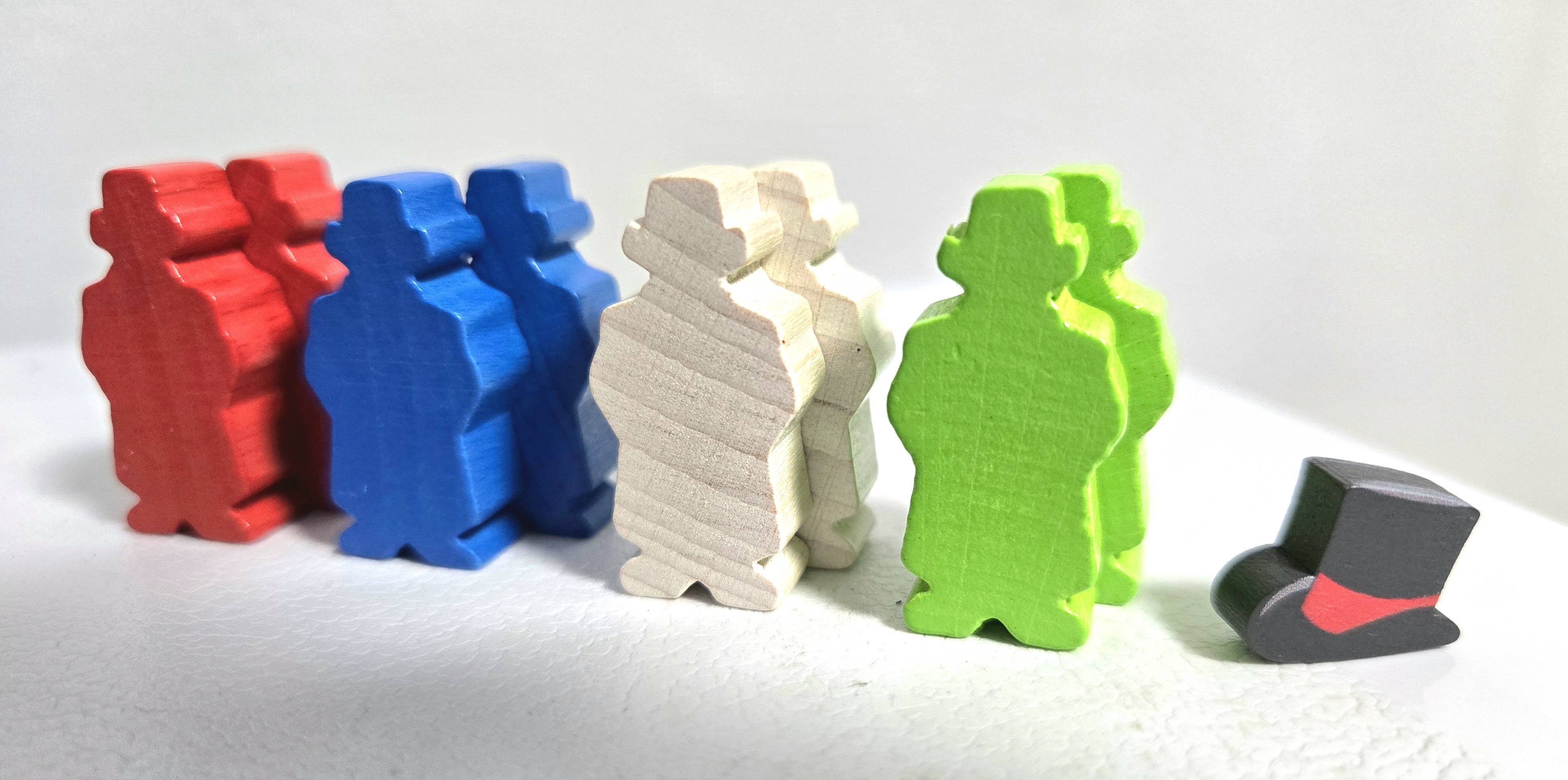 色覚多様性に配慮した4色の紳士コマと、他人を動かしてあげた紳士なプレイヤーが受け取るシルクハットトークンとが入っています。