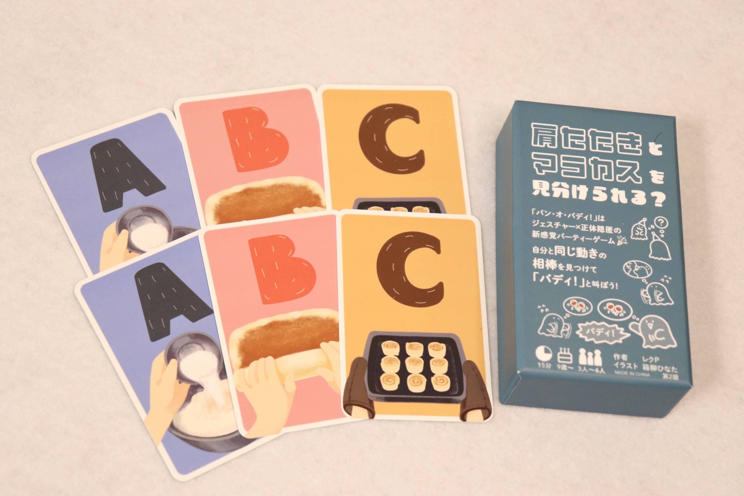 ①チームカード(AABBCC)をプレイ人数によらず、1枚ずつ配ります。(余ったカードは除けます。)