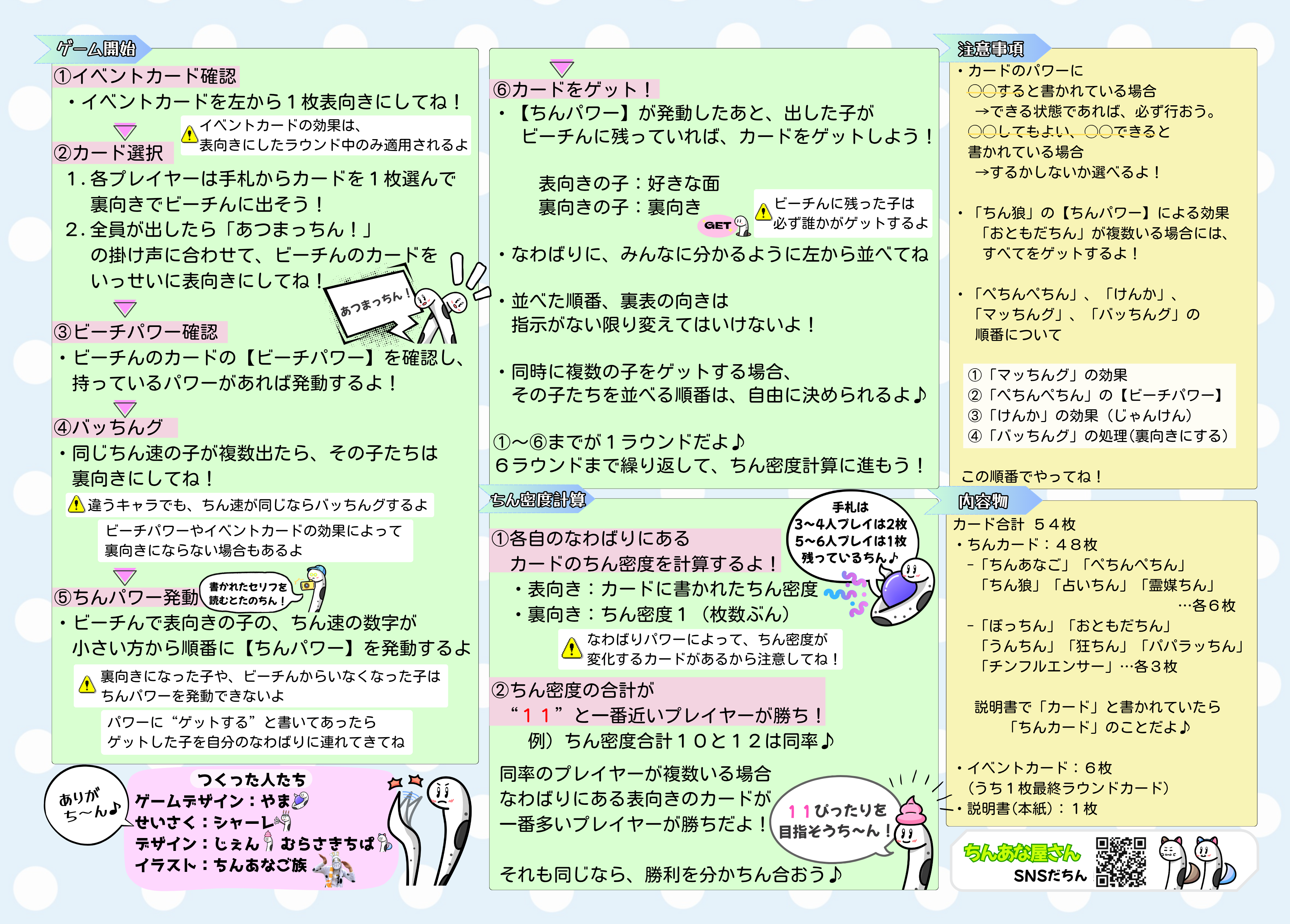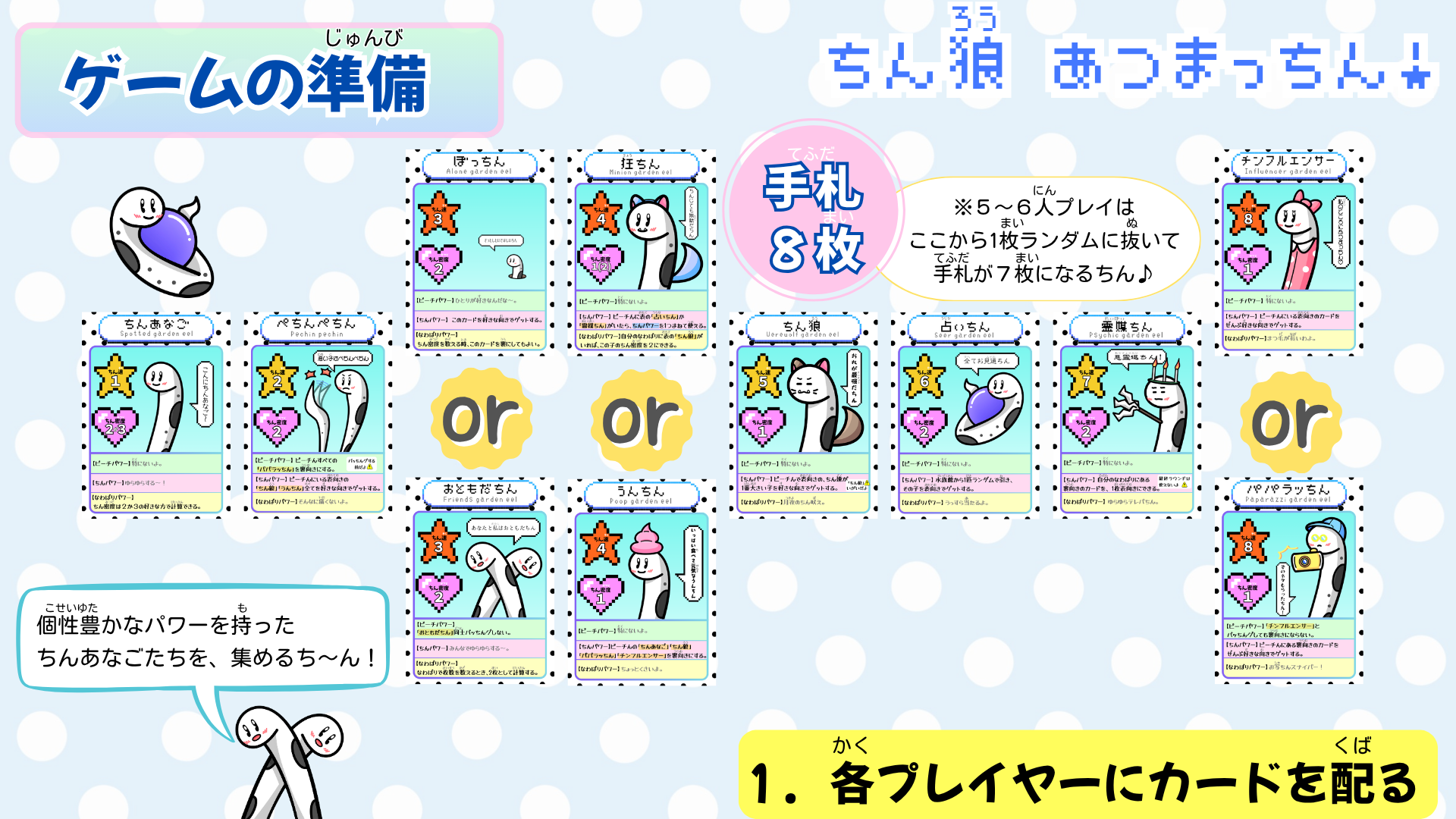 -「ちんあなご」「ぺちんぺちん」 「ちん狼」「占いちん」「霊媒ちん」 …各6枚