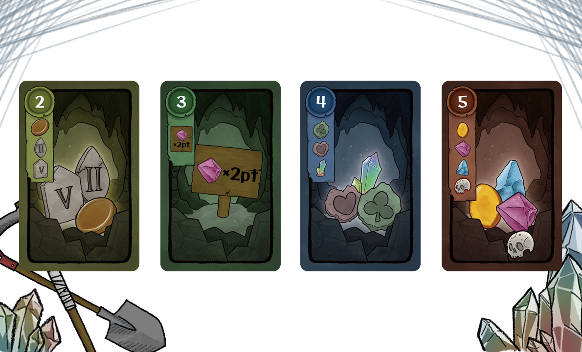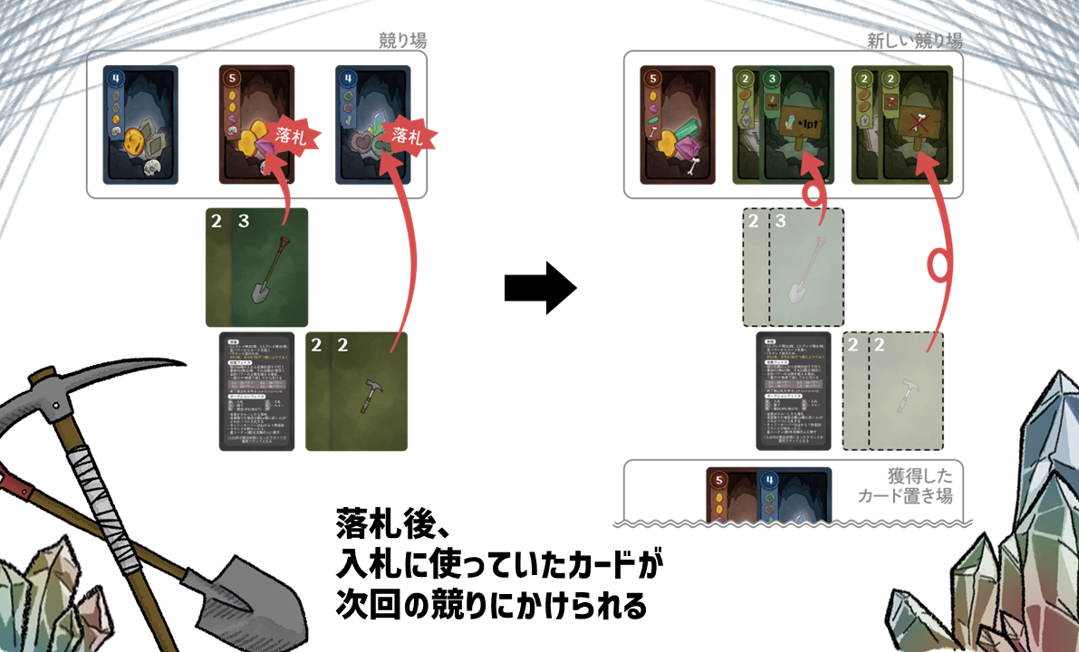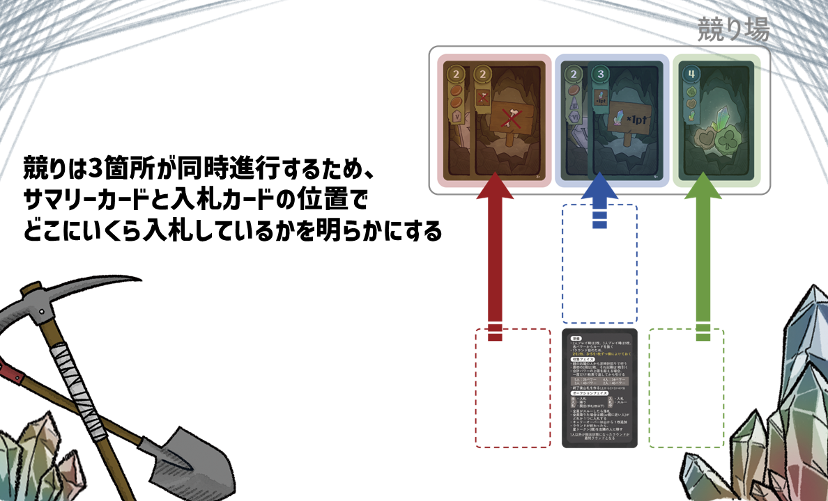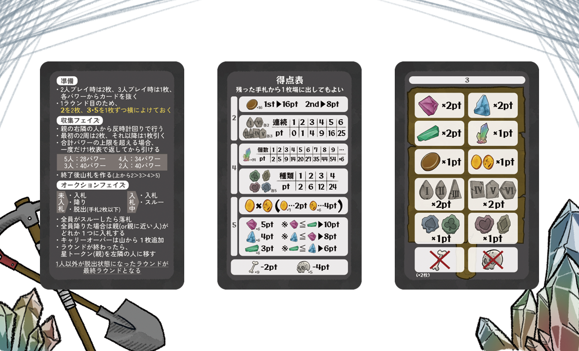 • 採掘場所を競り落としてお宝を集める、競り×セットコレクションゲーム