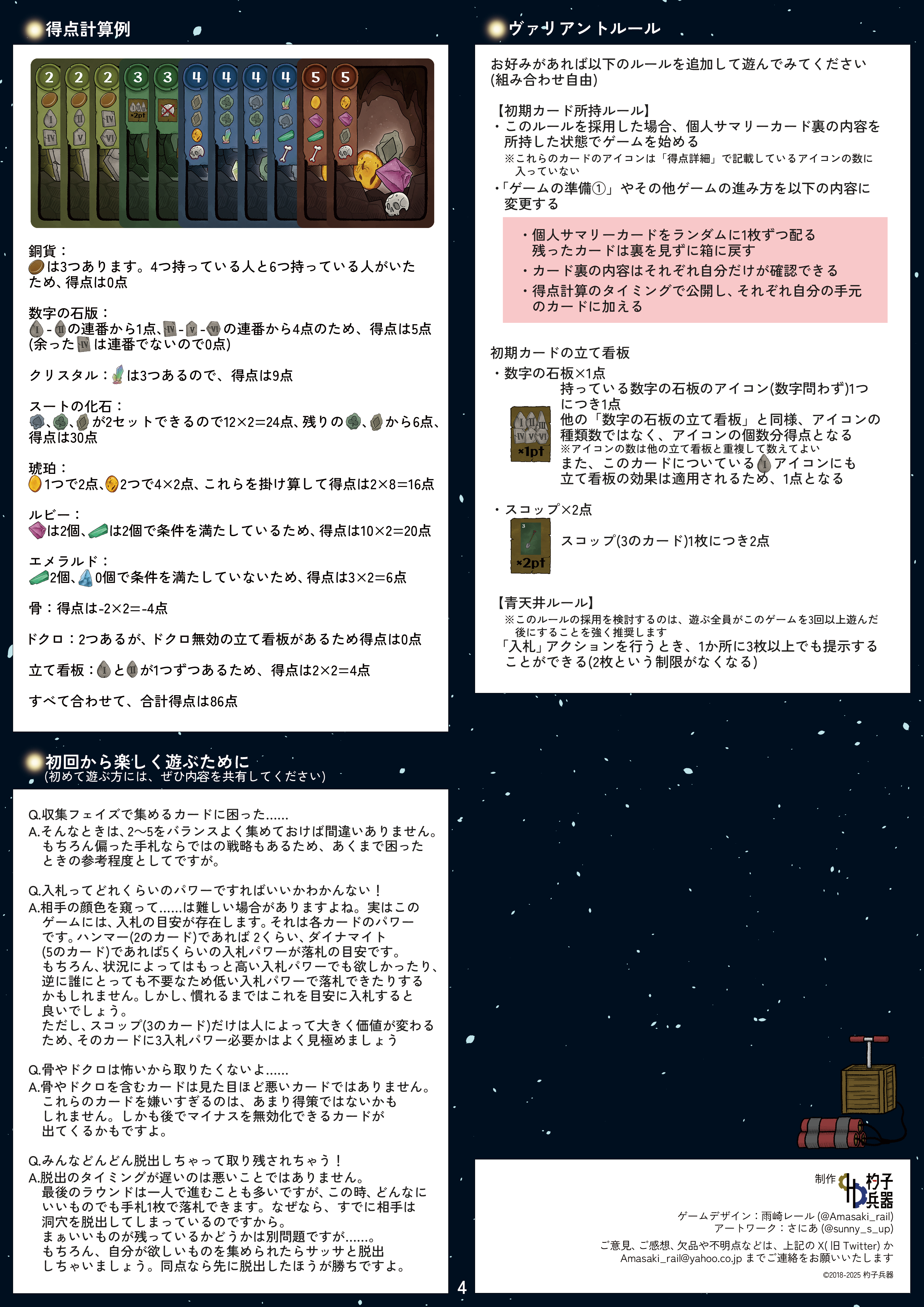 ・以降のゲームの手番をすべてパスする。(親が変わっても手番が飛ばされる)