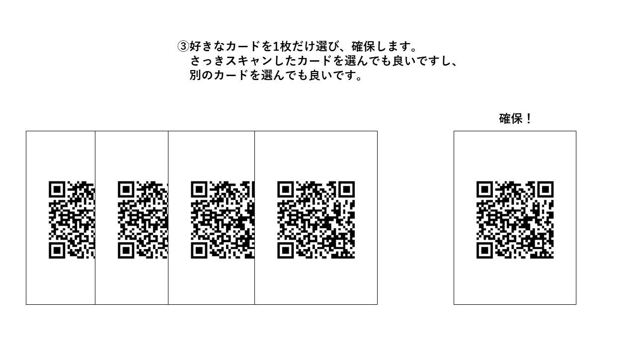 - 回ってきたカードでQRコードをスキャンできるカードは1枚だけ!見た物を取る?他のを取る?