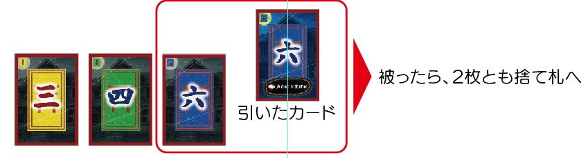 既に持っているカードと引いたカードの2枚を捨て札にします。