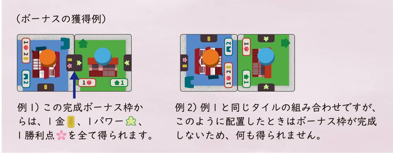 建物タイルには、その配置の仕方により様々なボーナスをもたらすアイコンが書かれています。