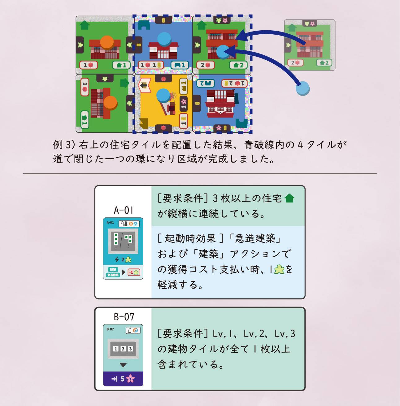 特定の条件を満たした「区域」は、手札である要望カードの達成条件を満たすことができます。