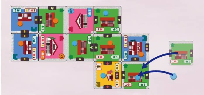 タイルを配置することで建物の建築を行い、ゲームが進むと段々町並みがにぎやかになっていきます。