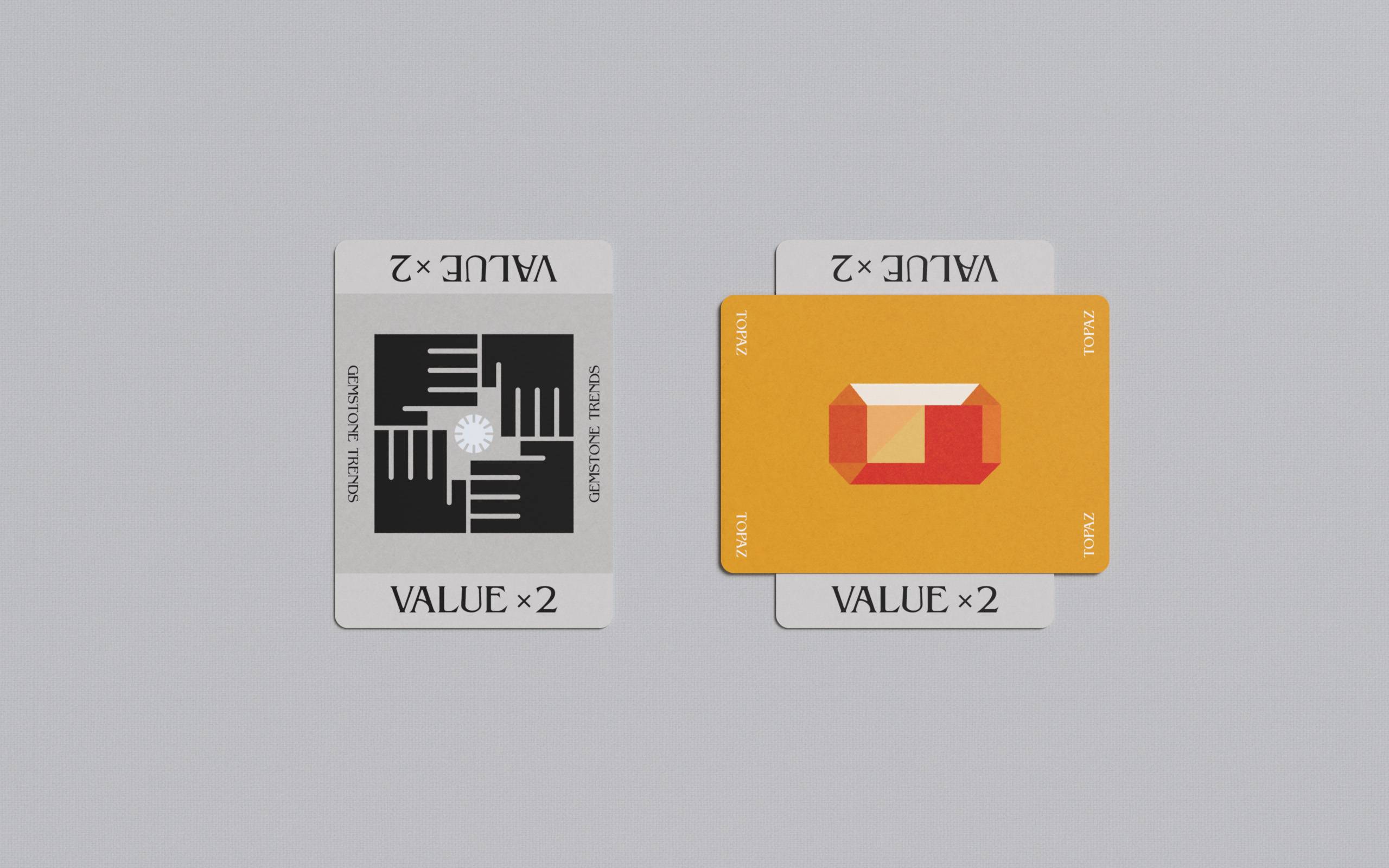 トレンドカードにのっている宝石は得点が2倍! トレンドは手番に手札と交換することもできます。最終的にどのトレンドになるかを見極めて手札に残しましょう。※LAST ONE BONUSも対象です。