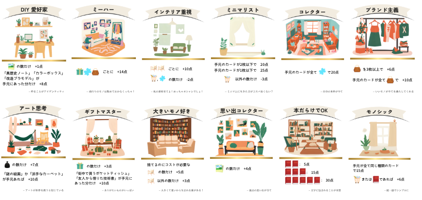あなたの理想空間を表す「ビジョンカード」は全部で12枚。是非ともお気に入りのビジョンを目指してみてください!
