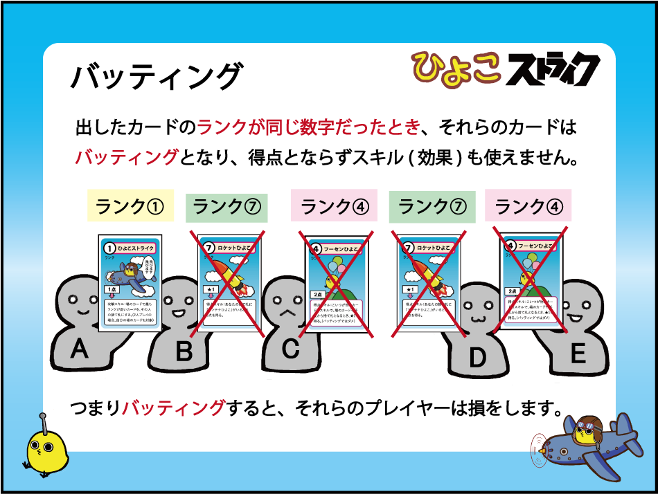ここでの注意点は、バッティングは「同じランクのカード」で発生するところです。