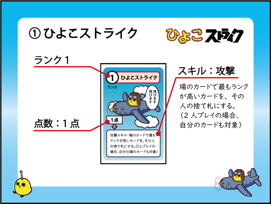スキルはランク4〜6のカードを1枚落とす「ひよこストライク」の縮小版だね。
