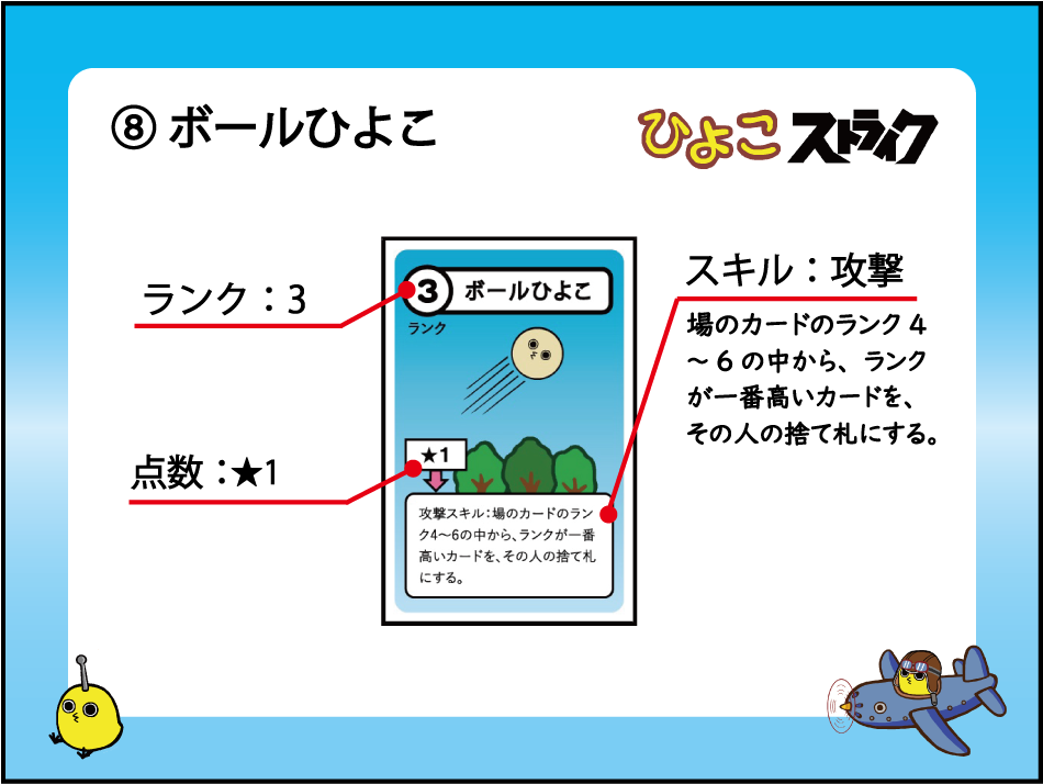 単純に「ひよこストライク」の強化版だから、入手できたら絶対に手札に入れよう。