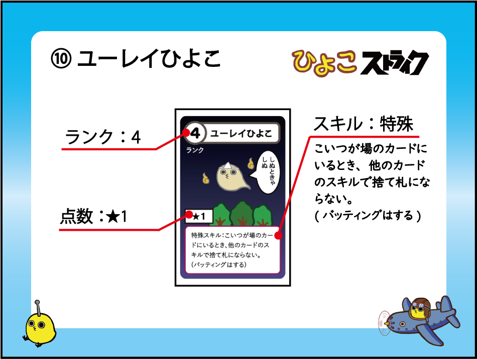 幽霊だから「ひよこストライク(改も含む)」の効果は効かないよ。