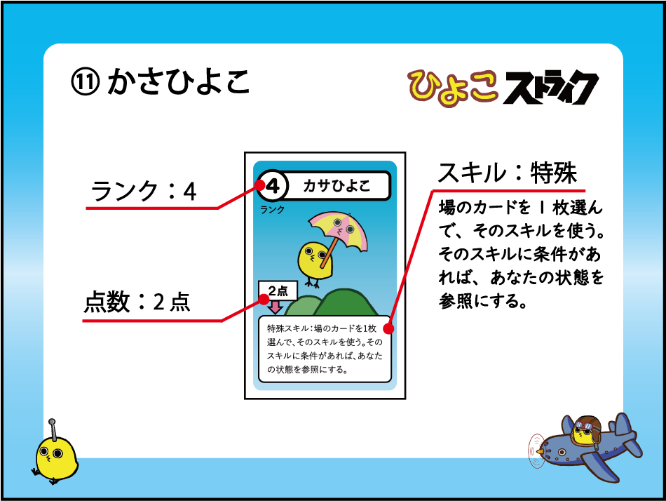 だけどね、こいつが捨て札にいることで、特定の「ひよこ」のスキルが使えるようになるよ。