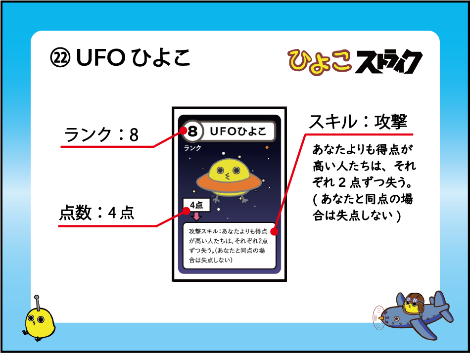 こいつも「ロケットひよこ」が出ていれば追加で3点もらえるよ。