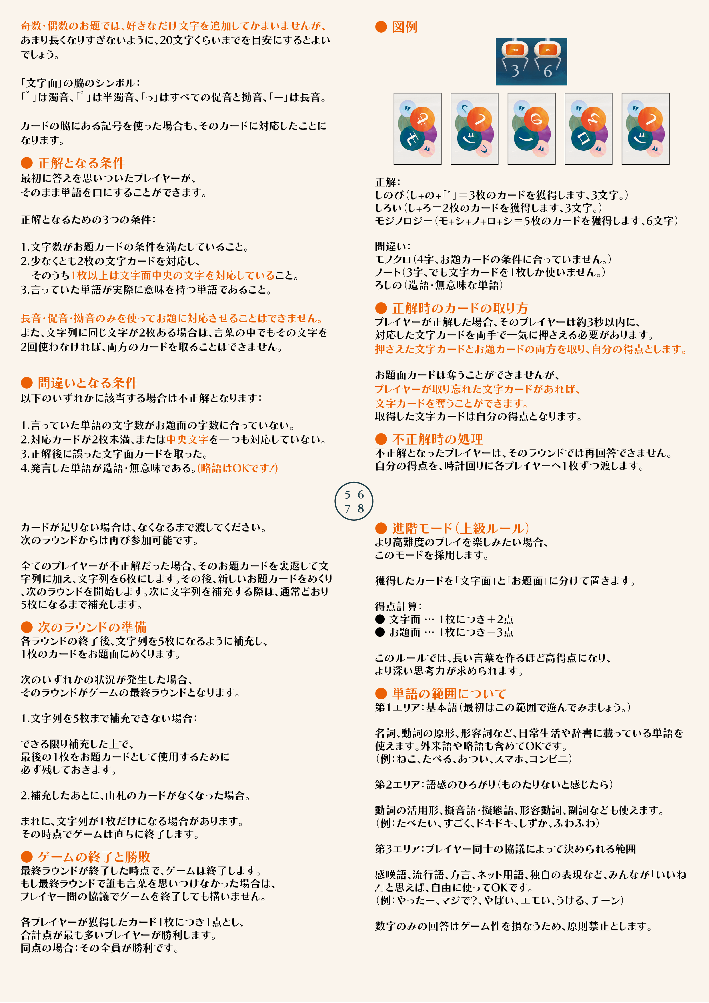 - お題カードの文字数に合う単語を最初に言えた人が得点!