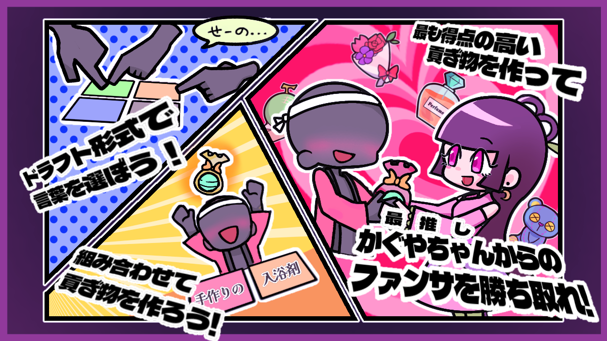 - 💓最推しアイドル・かぐやちゃんにファンサをもらうべく、"貢ぎ物"(プレゼント)を献上しよう!💓