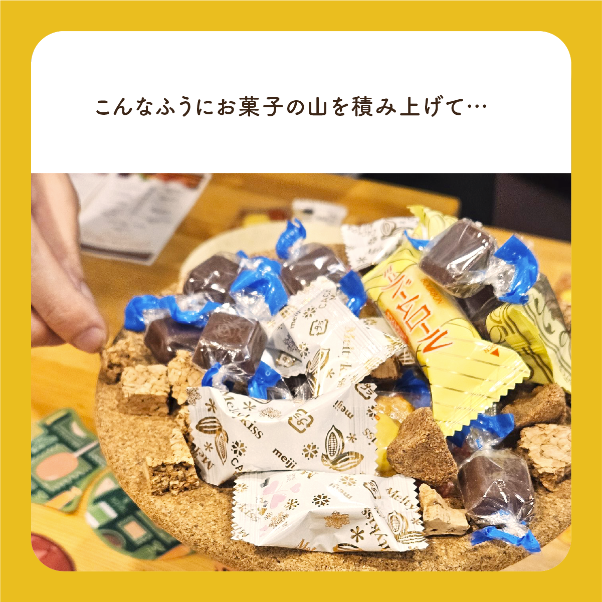 だんだんと「お菓子の山」が出来上がっていき、