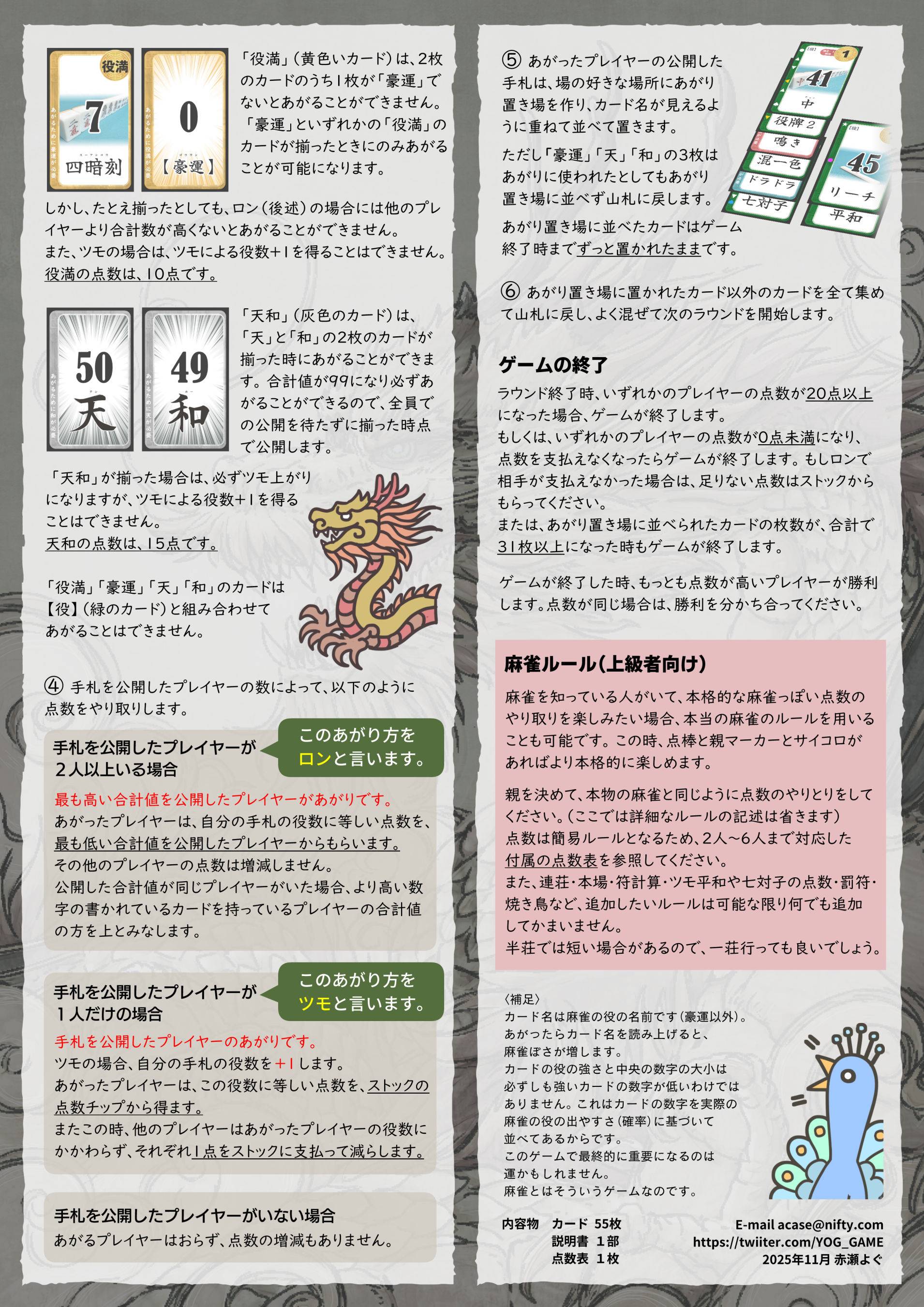 - 麻雀のプレイ体験の空気感を再現したカードゲーム