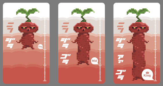 マンドラゴラには4つの品種に3つのサイズがあり、それぞれメモリが付いています。