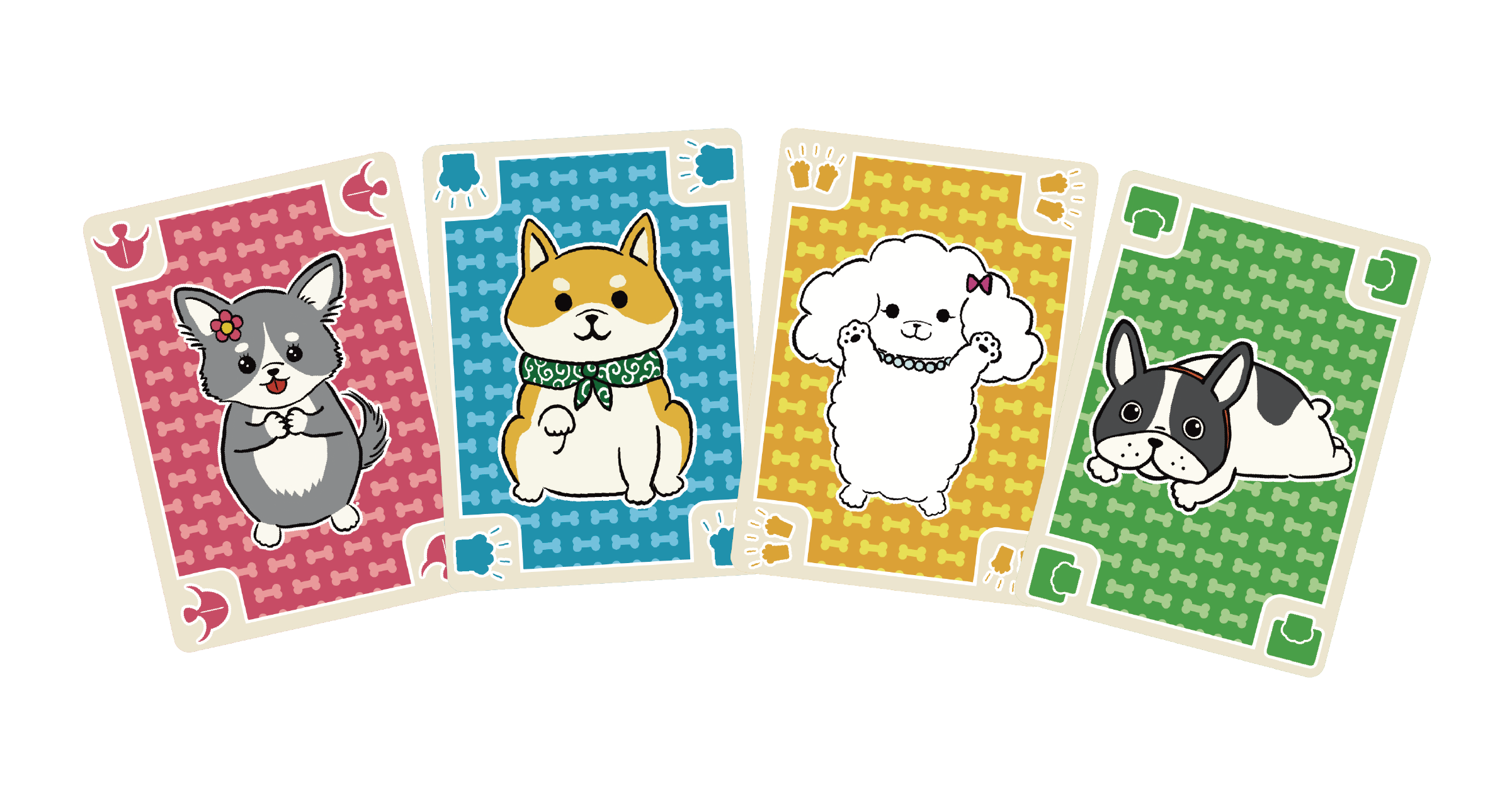『ラストワン』は注意力と反射神経が試されるアクション系パーティーゲーム!カードを引いて同じ種類のワンちゃんを集めよう。4枚そろったらそのワンチャンと同じポーズ。誰かがポーズしたら全員すぐにマネしよう。一番遅かった人の負け。ポーズは全部で4種類。お手とバンザイは素早く、おねだりと伏せはこっそりゆっくり。誰がどのカードを狙っているかを見抜けばゲームが有利に。シンプルだけどみんなでワイワイ盛り上がれるカードゲームです。